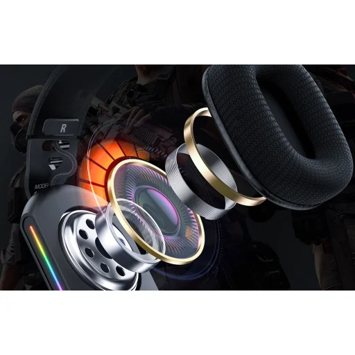 Egyedülálló RGB háttérvilágítás: Az ONIKUMA X12 dinamikus RGB megvilágítással rendelkezik, gradiens és pulzáló effektekkel. Ennek köszönhetően a fejhallgató nemcsak hangzása, hanem vizuálisan is lenyűgöző - fantasztikus kiegészítője lesz a legtöbb játékos munkaállomásnak.