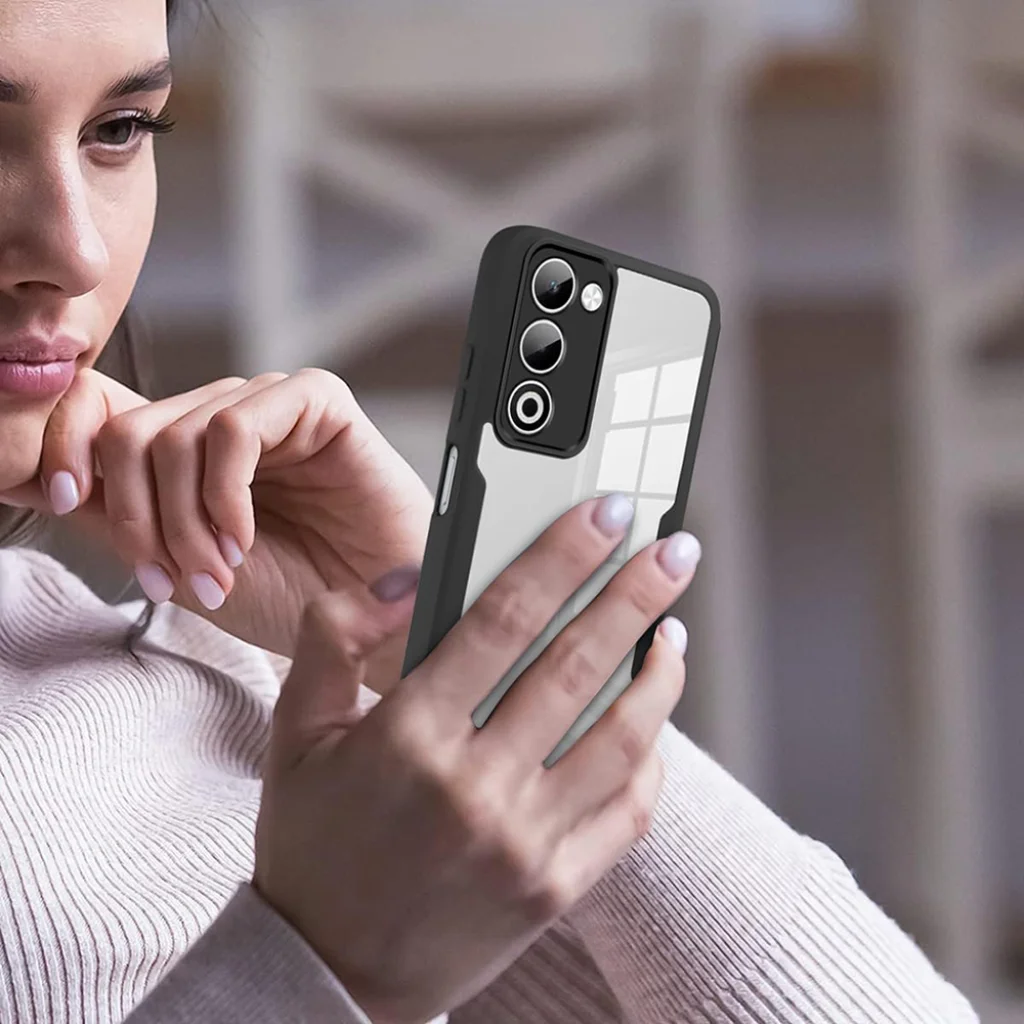 A ColorVerse 360 Series tok egyedülálló, kétrészes kialakításával teljes körű védelmet nyújt telefonodnak. A strapabíró előlap beépített képernyővédővel rendelkezik, amely megóvja a kijelzőt a karcolásoktól és ütésektől. Ezzel párhuzamosan a hátlap egy masszív, átlátszó polikarbonát (PC) rétegből és egy rugalmas szilikon lökhárítóból áll, amely elnyeli az ütéseket és rázkódásokat, garantálva a 360°-os védelmet.