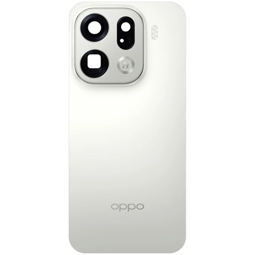 Oppo Find X9 Pro akkumulátor hátlap - Selyemfehér, az Oppo licencével készült pótalkatrész, amely a telefonon sérült elem cseréjére szolgál. Ragasztót és kamera lencsét is tartalmaz.