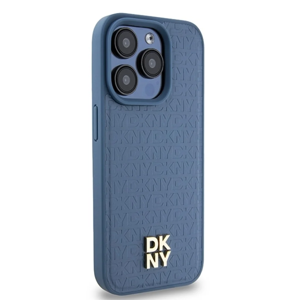 Original Case DKNY hardcase bőrtok monogram minta fém logó MagSafe DKHMP15LPSHRPSB iPhone 15 Pro kék tok