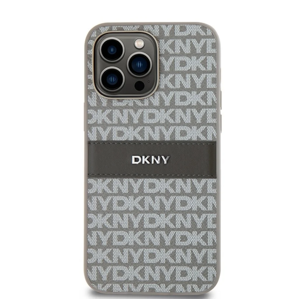 Original Case DKNY kemény tok bőr Mono Stripe & Metal Logo DKHCP14XPRTHSLE iPhone 14 Pro Max bézs tok
