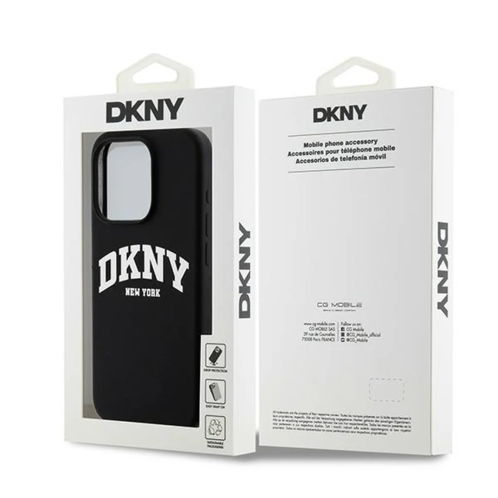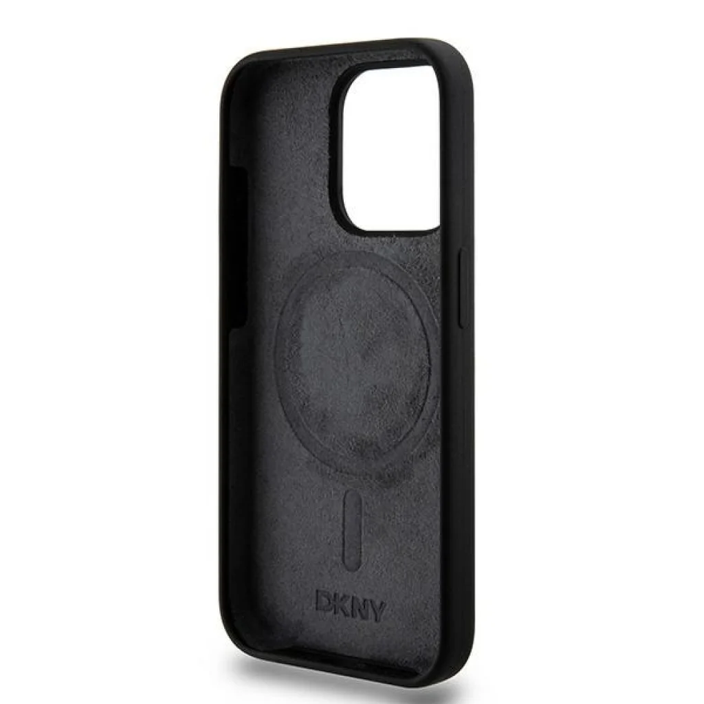 Original Case DKNY keménytok folyékony szilikon fehér nyomtatott logóval MagSafe DKHMP15LSNYACH iPhone 15 Pro fekete tok