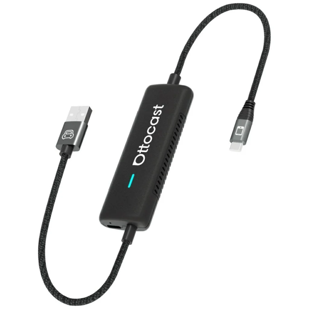 Az Ottocast CA450-T egy letisztult, fekete, kompakt téglalap alakú adapter, amely diszkréten illeszkedik az autód belső terébe. A készüléken elhelyezkedő diszkrét kék LED visszajelző tájékoztat a működési állapotról. A tartós, fonott kábelek nemcsak esztétikusak, hanem ellenállók is a mindennapi használat során. Az adapter USB-A és USB-C csatlakozási lehetőségekkel is rendelkezik, így rugalmasan csatlakoztatható a legkülönfélébb autómodellek USB portjaihoz, biztosítva a széles körű kompatibilitást (gyári vezetékes Apple CarPlay-el rendelkező járművek, kb. 2017-től gyártottak).
