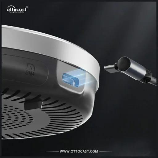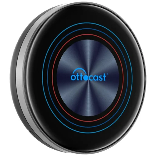 Az Ottocast PCS46-BM nemcsak funkcionális, hanem esztétikus is. Elegáns, letisztult, kör alakú fekete dizájnja, diszkrét ezüst kerettel és a tetején elhelyezett ikonikus Ottocast logóval (kék és piros koncentrikus gyűrűkkel díszítve), tökéletesen illeszkedik a modern BMW belső terekbe. Az eszköz alján található szellőzőnyílások optimális hőmérsékletet biztosítanak, garantálva a stabil és hosszú távú működést még intenzív használat mellett is, a −20 °C és +70 °C közötti üzemi hőmérséklet-tartományban.