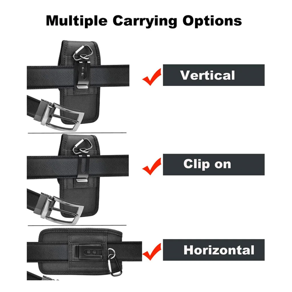 - Függőleges övtok: A beépített övhurok segítségével stabilan rögzíthető az övre függőleges pozícióban.