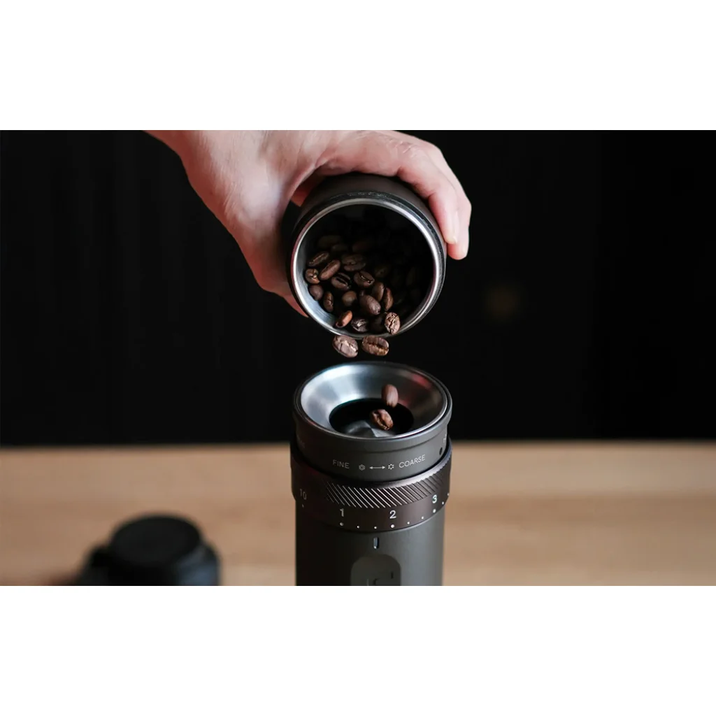 Az OutIn Fino egy elektromos kávédaráló, amelyet a mobilitás, a kényelem és a pontosság jegyében terveztek. Kompakt, vezeték nélküli kialakítása mindössze 690 grammot nyom, így ideális otthoni használatra, valamint utazáshoz vagy kempingezéshez. Az innovatív őrlési technológia biztosítja az őrölt kávébabok egyenletes textúráját, függetlenül a választott főzési módszertől, az eszpresszótól a French Press-ig. A beépített lítium akkumulátor támogatja a gyorstöltést, így a készülék egy órán belül teljesen feltölthető, ami nagyobb használati szabadságot jelent anélkül, hogy aggódnia kellene az energia lemerülése miatt.