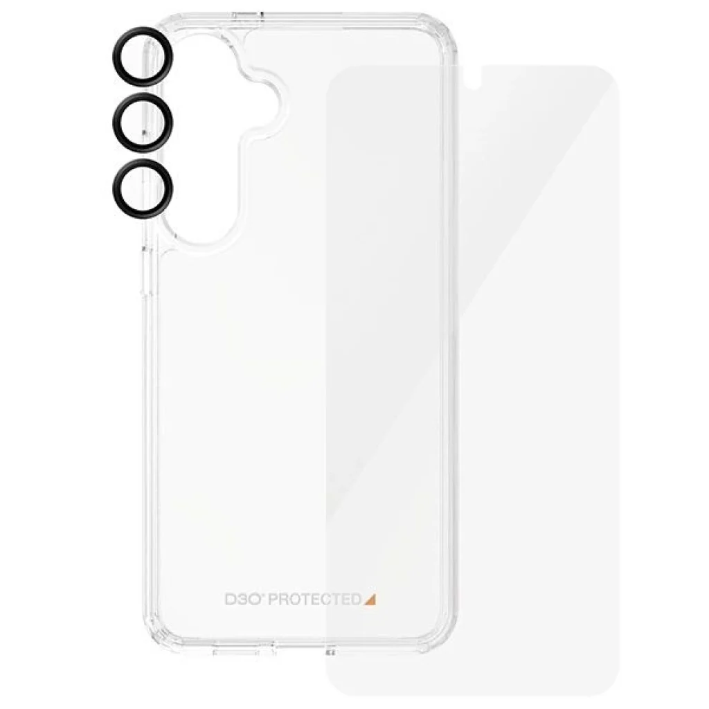 PanzerGlass™ Bundle Pack 3 az 1-ben. Szeretnéd megvédeni a telefonodat? Úgy értem, TÉNYLEG megvédeni a telefonodat? Akkor ez a 3 az 1-ben védelmi csomag a PanzerGlass™-tól neked való! A vezeték nélküli töltéssel kompatibilis HardCase tokot, egy ultra-széles kijelzővédőt és egy Hoops kamera lencse védőt tartalmaz. Ez a csomag megvédi a telefonodat az éles sarkok okozta karcolásoktól, a kőkemény járdára ejtések következményeitől és bármi mástól, amit az élet rád zúdít. A kijelzővédőn még egy ujjlenyomat-ellenálló bevonat is található, amely csökkenti az ujjlenyomatok és zsíros foltok mennyiségét. A HardCase tartalmazza a világ legfejlettebb növényi alapú védőanyagát, a D3O® Bio-t, amelyet elit katonai erők és profi sportolók is használnak. A hátlap 100%-ban újrahasznosított műanyagból készült, míg a műanyag keret 44%-ban növényi alapú anyagokat tartalmaz. A kijelzővédő 60%-ban újrahasznosított anyagokból készült, és 3-szor karcállóbb, mint az S23 sorozatunk modelljei. Mi a helyzet a Hoops kamera lencse védővel? Megvédi a kamera lencséjét a karcolásoktól és repedésektől, amelyek maradandó nyomot hagynának az összes jövőbeli fényképeden. A 3 az 1-ben védőkészlet meghosszabbítja a telefonod élettartamát, így egy nap továbbadhatod valaki másnak, aki ugyanolyan szeretettel használja majd, mint te. Ez egy módja annak, hogy fenntarthatóbb jövőt építsünk. Egy másik mód a kevesebb csomagolóanyag használata: Ennél a csomagolásnál sikerült 58%-kal csökkenteni a papírcsomagolás mennyiségét a korábbi csomagolásokhoz képest. Mint minden termékünk, a védőcsomag egy FSC™ tanúsított újrahasznosítható dobozban érkezik. Az összeszerelés is egyszerű. Csak szereld fel a kijelzővédőt a mellékelt EasyAligner segítségével, rögzítsd a kamera lencse védőt, és pattintsd rá a HardCase tokot. Hogy még könnyebb legyen, lépésről lépésre útmutatót is mellékeltünk, valamint egy QR kódot a gyors hozzáféréshez az online videós útmutatónkhoz. És ha minden fel van szerelve, soha többé nem kell aggódnod, hogy a telefonod a földre esik. Lehet, hogy nem történik meg, de ha mégis, megbánnád, hogy nem kattintottál az „add to cart” gombra.