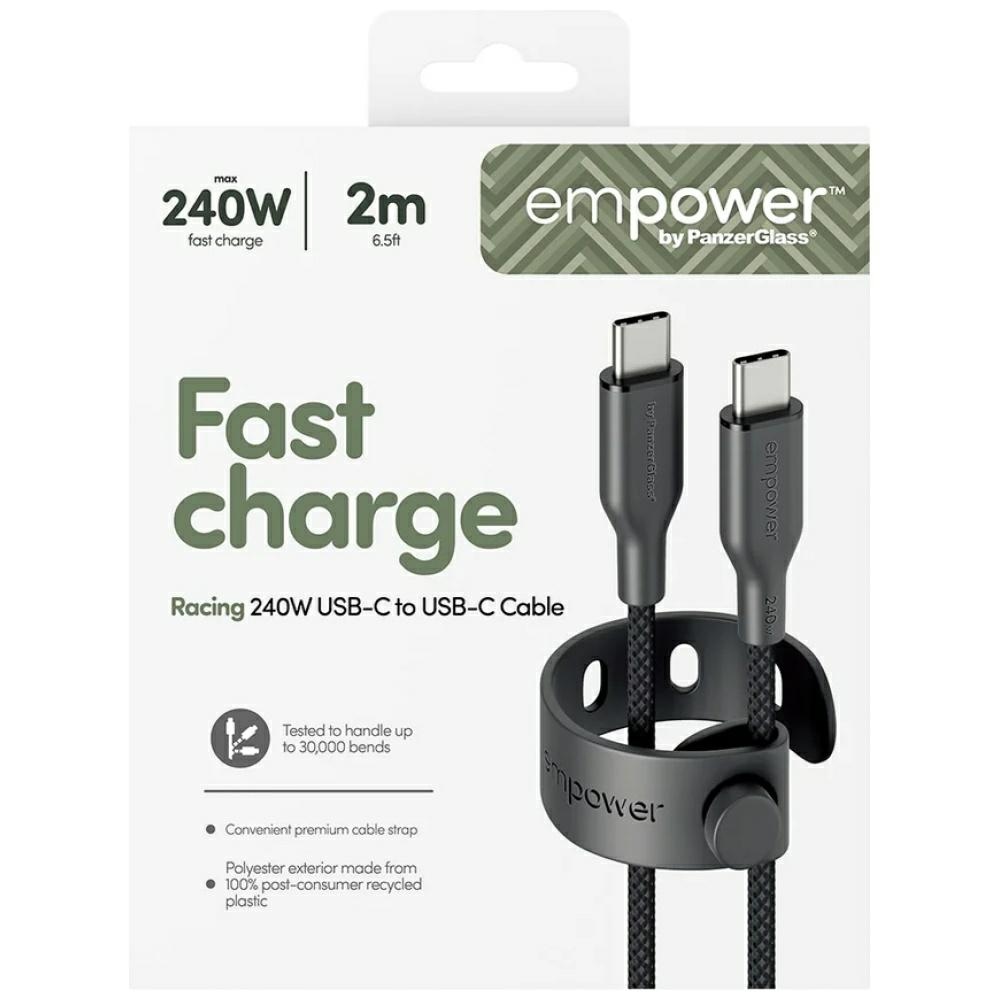 Az Empower Racing kábel megbízható megoldást nyújt a maximális teljesítményt és megbízhatóságot igénylő felhasználók számára. Támogatja az USB Power Delivery 3.1 EPR töltést akár 240W teljesítménnyel, így ideális laptopok, táblagépek, okostelefonok és egyéb USB-C eszközök töltésére. A 2 méteres hosszúság szabadságot biztosít a használat során, miközben a mobilitás megmarad – tökéletes otthoni, irodai vagy utazási célokra. Szilárd USB-C csatlakozók garantálják a gyors és stabil töltést, valamint a zökkenőmentes adatátvitelt. Tartós kialakítása ellenáll a hosszas igénybevételnek. Ez a kiegészítő a teljesítményt, a kompakt méretet és az elegáns dizájnt ötvözi, így ideális a szigorú elvárásokat támasztó felhasználók számára. Műszaki adatok: Gyártó: PanzerGlass, Modell: Empower Racing USB-C ↔ USB-C, Maximális töltési teljesítmény: 240W (USB Power Delivery 3.1 EPR), Kábel hossza: 2 m, Szín: Fekete, Csatlakozók: USB-C - USB-C, Kompatibilitás: Laptopok, okostelefonok, táblagépek és más USB-C eszközök, Cél: Gyors töltés és adatátvitel, Kialakítás: Tartós, ellenáll a hosszas igénybevételnek.