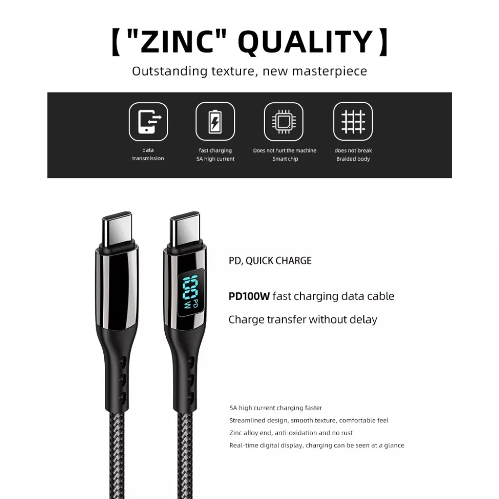 Termék leírás PD 100W gyorstöltésKábelhossz: 1mDigitális kijelzővel a teljesítményről3A gyorstöltés, 5A gyorstöltés, 6A gyorstöltésAnyag: Nylon, cink ötvözet