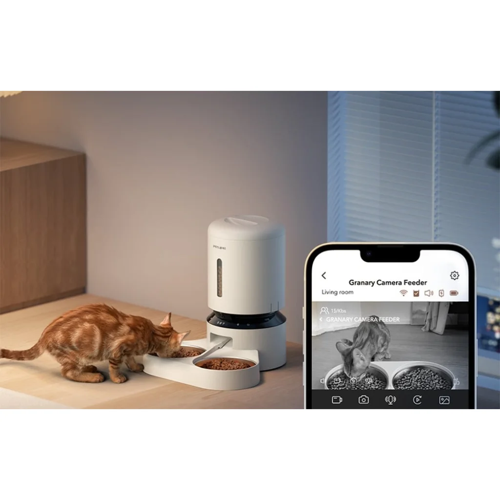 Gondoskodjon kedvencéről - még akkor is, ha Ön nincs otthon. A Petlibro Granary kamerával és dupla tállal több mint egy egyszerű ételadagoló - ez egy fejlett eszköz, amely lehetővé teszi, hogy precízen etesse kedvencét, és mindig szemmel tartsa őt. A lenyűgöző, 5 literes kapacitással rendszeres és friss étkezést biztosít, a lefelé néző kamera pedig teljes rálátást garantál kedvencére anélkül, hogy feleslegesen felfedné otthona belsejét. A beépített mikrofon és hangszóró kétirányú kommunikációt tesz lehetővé. Távolról is felhívhatja kedvencét, és akár egy 10 másodperces étkezési hívást is rögzíthet, hogy kedvencét a tálhoz közeledésre ösztönözze.
