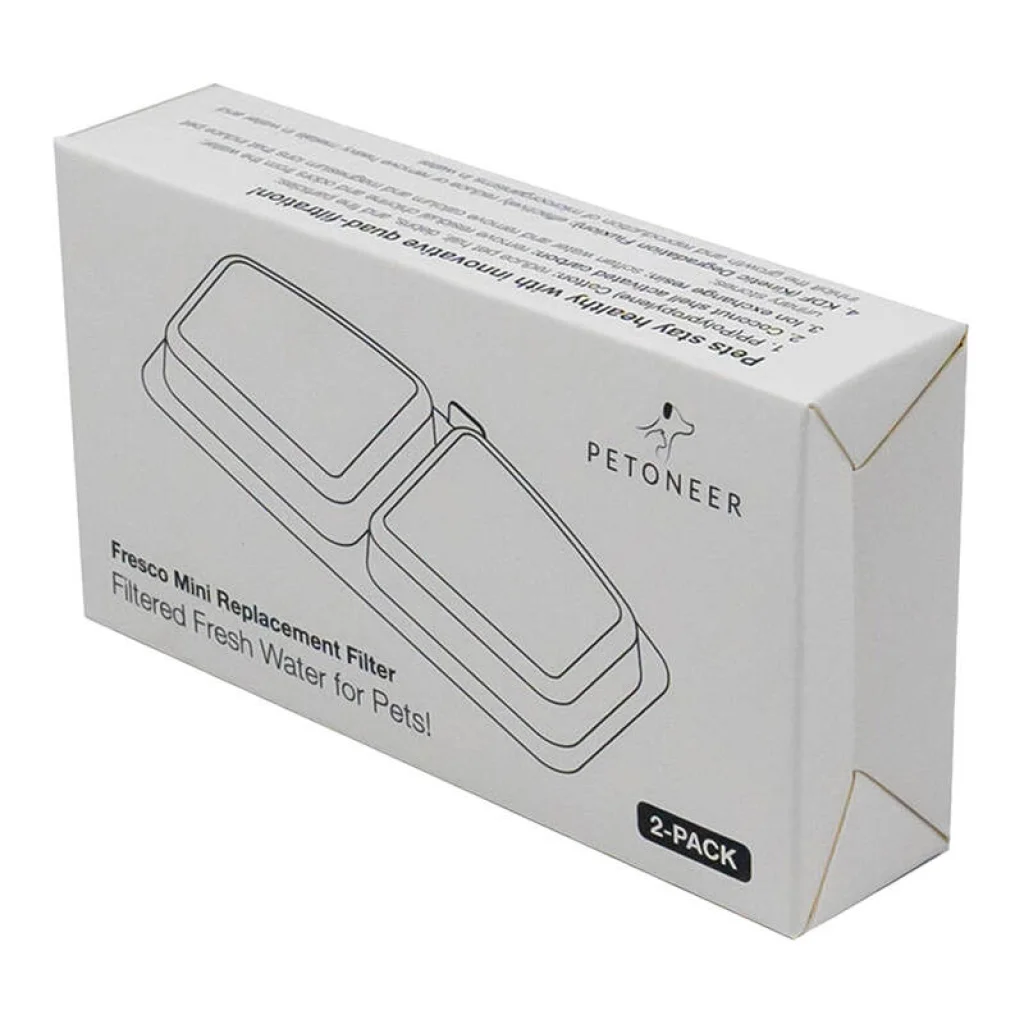Csereszűrők a Petoneer Fresco Mini itatókhoz. Már van egy Petoneer Fresco Mini fliptokod, és szeretnéd biztosítani, hogy kedvenced mindig tiszta és baktériummentes vízhez jusson? Ne felejtsd el, hogy ajánlott legalább 30 naponként szűrőt cserélni. Ha nem teszed meg, a szűrő hatékonysága fokozatosan csökken, és már nem garantálja az alapos tisztítást, mint az elején. Kerüld el a hasonló problémákat ezzel a praktikus készlettel! A csomagban 2 pót szűrőt találsz a Petoneer Fresco Mini itatóhoz. Négy lépcsős szűrés Egyedi szűrőjének köszönhetően a Fresco Mini itató hatékony négy lépcsős szűrést kínál. Az első lépcső a nagyobb részecskék visszatartása speciális PP anyaggal. Ezt követi a szűrés egy KDF szűrővel, majd a víz egy aktív szénszűrőn keresztül halad, végül egy ioncserélő gyantaszűrőn keresztül. Ennek eredményeként az itató tisztább vizet biztosít a kisállatoknak, amely mentes a baktériumoktól, törmeléktől és kellemetlen szagoktól, csökkentve ezzel a betegségek kockázatát. Speciális emlékeztető Aggódsz, hogy elfelejted kicserélni a szűrőt a Petoneer Fresco Mini-ben? Ne tedd! Az itató LED fényjelzéssel van ellátva, amely emlékeztetni fog. Amikor elkezd kék villogni, az azt jelenti, hogy a szűrőelem 30 napja van használatban és cserére szorul. Ilyenkor csak nyúlj bele a csomagba, vedd ki az új szűrőt, és cseréld ki a régit!