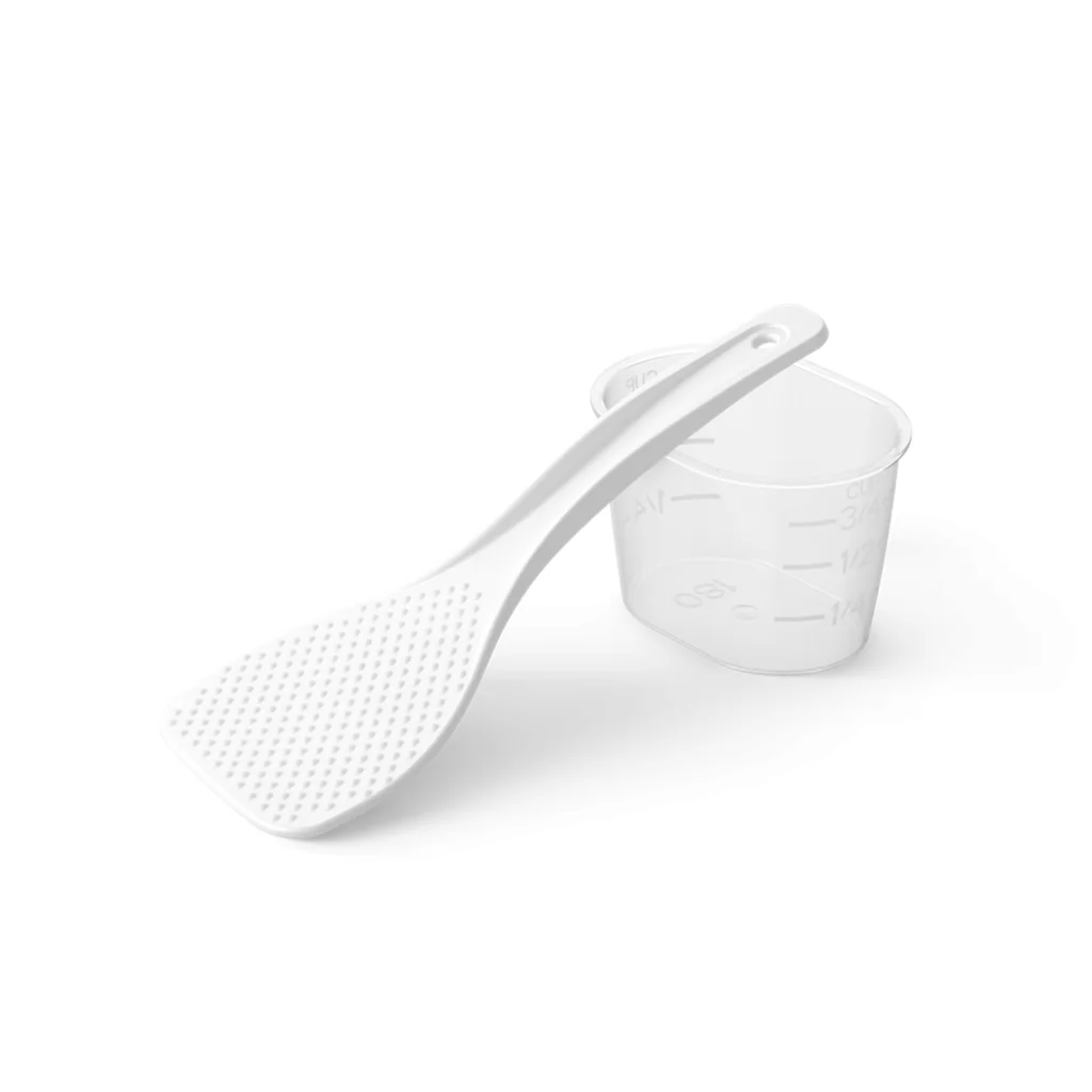 A készülékhez mellékelve talál egy praktikus mérőpoharat és egy rizskanálat, amelyek még kényelmesebbé teszik a főzési folyamatot és a tálalást.