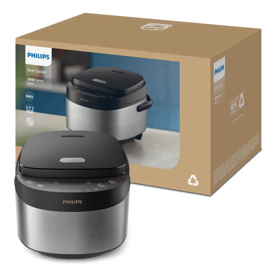 - Rendkívüli sokoldalúság: A Philips HD3093/80 nem csupán rizsfőző. A 3000-es széria Mini tagjaként 14 előre beállított főzési funkcióval rendelkezik, így könnyedén elkészíthet fehér, barna vagy sushi rizst, de kását, levest, süteményt is. Sőt, lassú főzésre, gőzölésre, gyors főzésre és újramelegítésre is alkalmas, mindig tökéletes textúrát biztosítva.