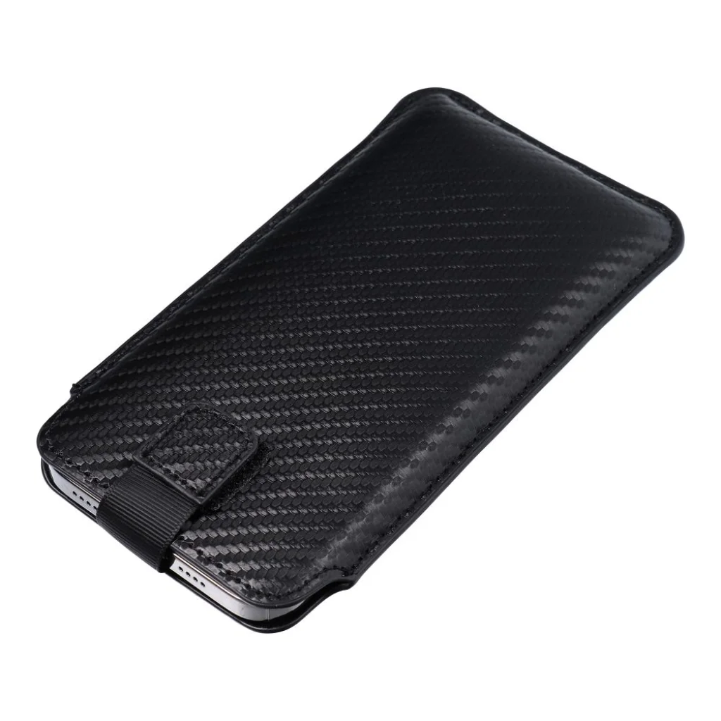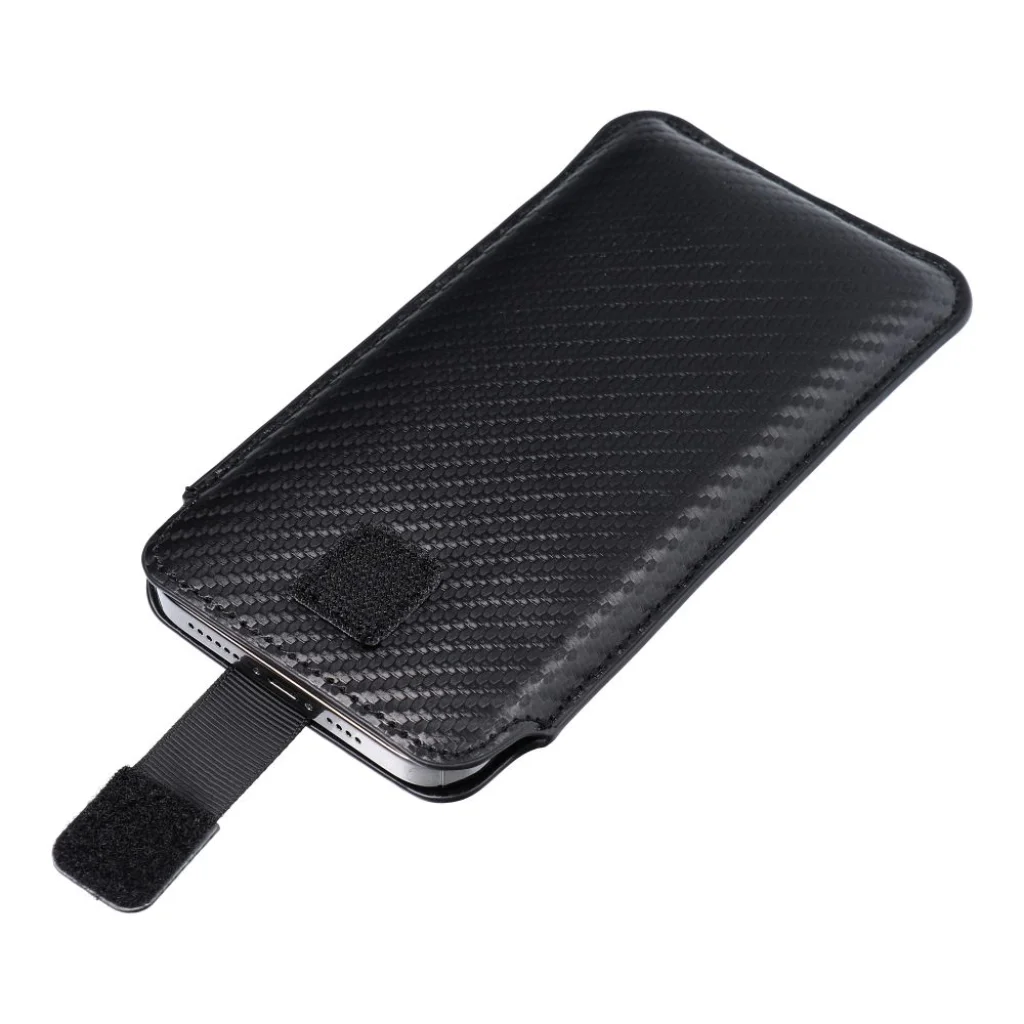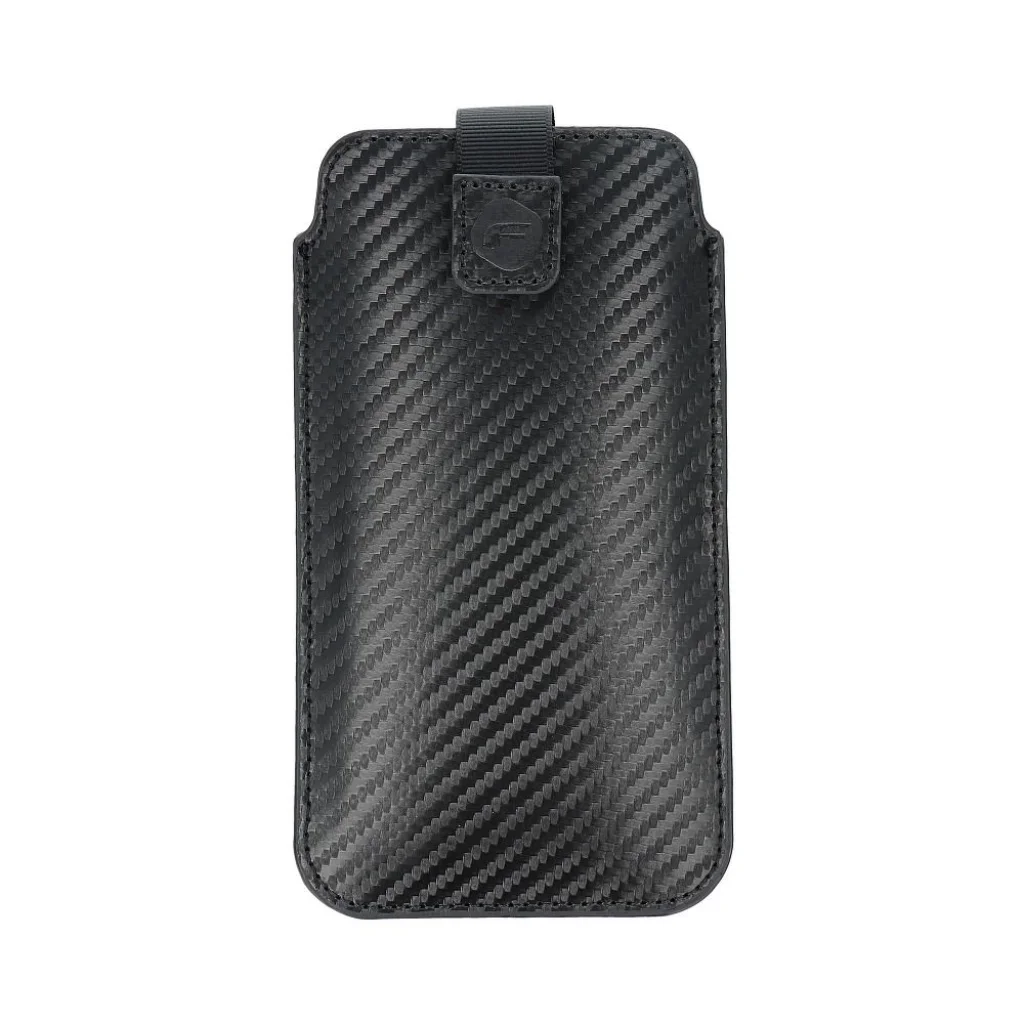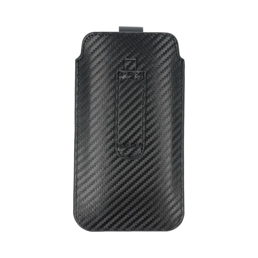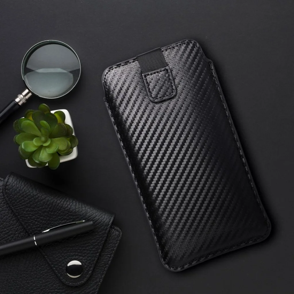 Univerzális tok karbon mintázattal - Forcell POCKET CARBON. Teljes védelmet biztosít mindkét oldalról. Tépőzáras zárással és a PULL-UP rendszerrel van felszerelve, amely megkönnyíti a telefon eltávolítását. Több méretben elérhető. Míg a hagyományos hátlap nem biztosít teljes védelmet az okostelefonnak, kijelzőjét védtelenül hagyva, a Forcell POCKET CARBON tok mindkét oldalról védi a telefont, minimalizálva a sérülés és karcolás kockázatát. Magas minőségű ökológiai bőrből készült, ellenáll a sérüléseknek és a kopásnak. Így hosszú ideig gyönyörű megjelenését élvezhetjük. A karbon minta elegáns, üzleti megjelenést kölcsönöz a toknak. A tépőzáras zárás megakadályozza, hogy a telefon kicsússzon a tokból. Továbbá, a tok belsejében található PULL-UP szalag megkönnyíti a készülék gyors kivételét. Az AIR ON rendszer folyamatos levegőellátást biztosít a tok belsejébe, így megvédi a telefont a túlmelegedéstől és növeli a hangerőszintet, különösen fontos a bejövő hívások során. A tok belseje alcantaraból készült, ami megakadályozza a készülék burkolatának karcolódását, és megkönnyíti a telefon gyors behelyezését és eltávolítását. A beépített övcsipesszel a tok az övre rögzíthető, így mindig kéznél van. Egy speciális horog lehetővé teszi a pánt rögzítését és a tok kényelmes viselését.