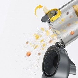 A tartály és a szűrőrendszer egyszerű ürítése: A tartályból a szennyeződés véletlen kiömlését megakadályozó mechanizmus lehetővé teszi, hogy a tartályt a szennyeződéssel való érintkezés nélkül, egyetlen gombnyomással kiürítse. Az átlátszó ház lehetővé teszi a töltés ellenőrzését. A kettős szűrőrendszer (előszűrő + HEPA-szűrő) a porszemcsék akár 95,99%-át is eltávolítja, és mindkét elem könnyen eltávolítható és mosható, meghosszabbítva élettartamukat.