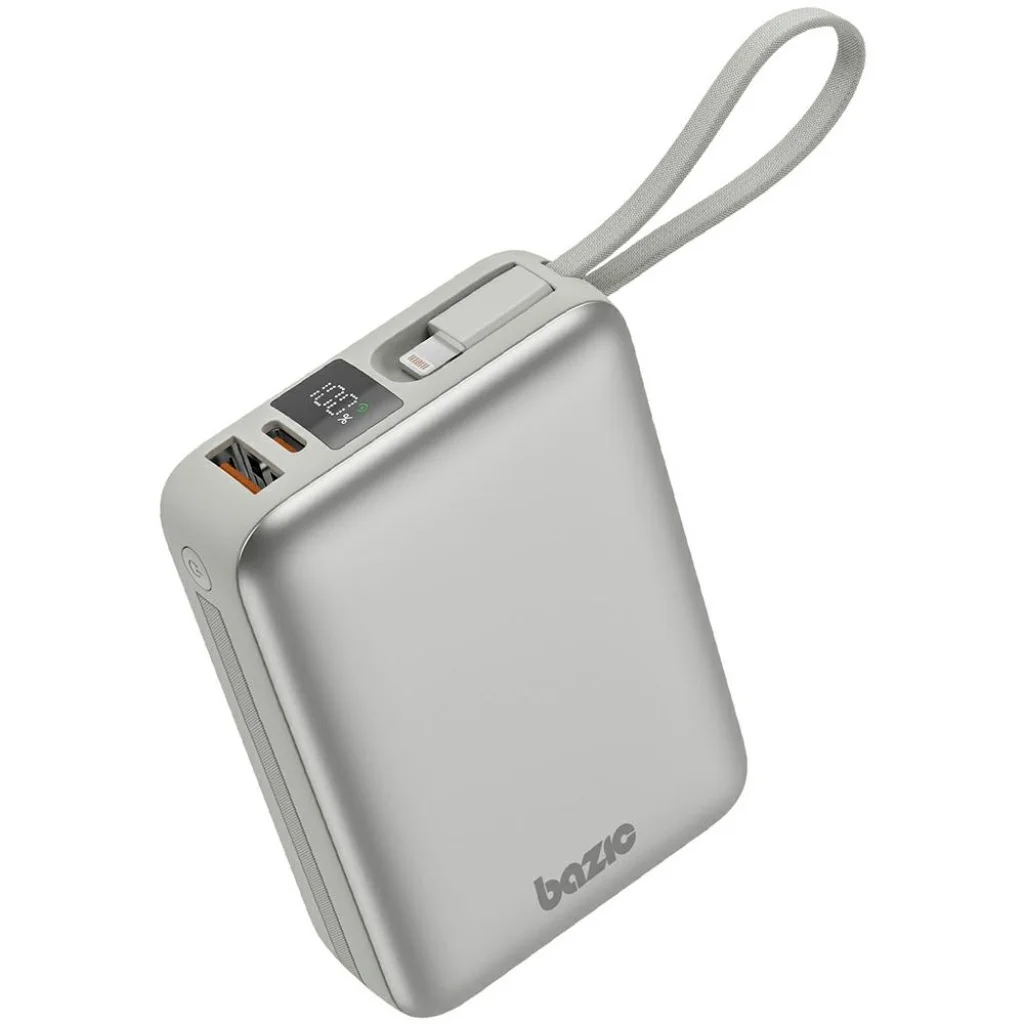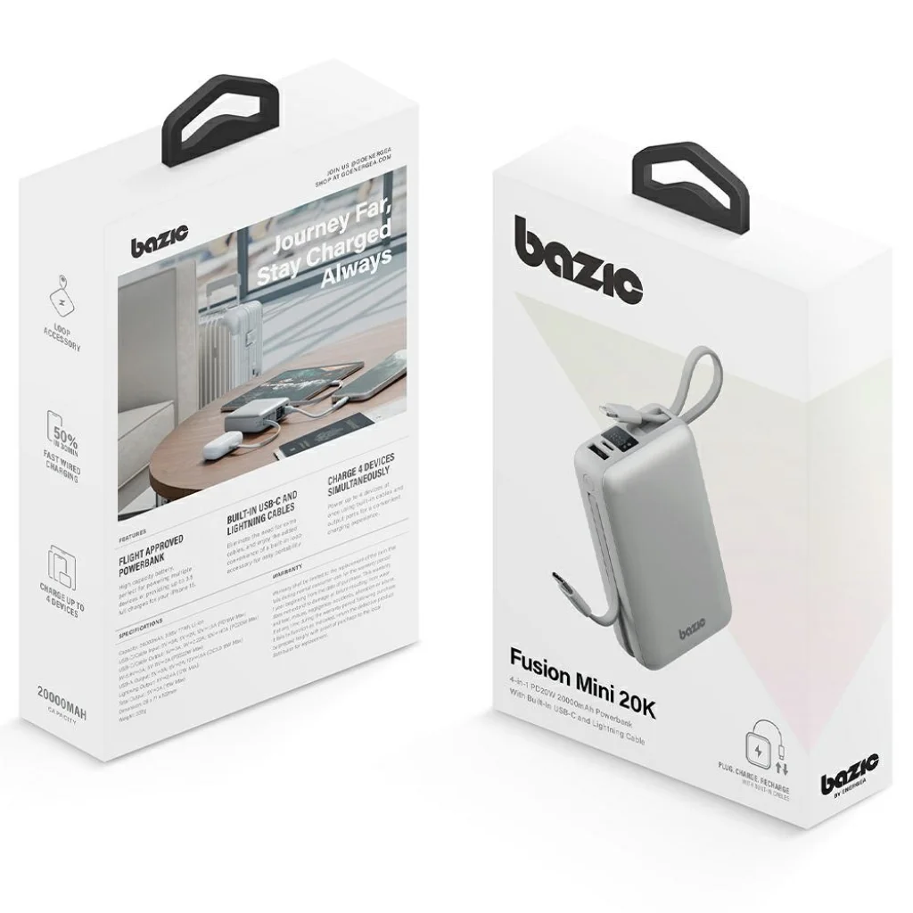 A Bazic márka az innováció, a minőség és a megbízhatóság ötvözete, töltési megoldásokat kínálva, amelyek javítják a mindennapi élet kényelmét. A fejlett technológiának és a legújabb töltési szabványok támogatásának köszönhetően a Bazic termékek megfelelnek az igényes felhasználók elvárásainak. Termékeik tervezésekor a maximális teljesítményt, biztonságot és kényelmet tartják szem előtt. A 20000 mAh kapacitású PowerBank 4 az 1-ben Bazic Fusion Mini tökéletes megoldást nyújt azok számára, akik megbízható energiaforrásra vágynak napközben. A beépített USB-C és Lightning kábelek gyors és biztonságos töltést biztosítanak anélkül, hogy extra kábeleket kellene magával vinnie. Emellett USB-C és USB-A portokkal is rendelkezik, így akár négy eszközt is tölthet egyszerre. Könnyedén feltöltheti mobil készülékeit, és a powerbank kapacitása lehetővé teszi a többszöri töltést, így nélkülözhetetlen utazáskor, munkában vagy mindennapi használat során. A powerbank 20W-os gyors töltést kínál, így szinte pillanatok alatt feltöltheti eszközeit. Az integrált LED kijelző mutatja a powerbank töltöttségi állapotát. A beépített USB-C kábelnek köszönhetően nemcsak az eszközöket töltheti vele, hanem magát a powerbankot is, mindezt gyorsan és hatékonyan. A pass-through töltési funkció lehetővé teszi, hogy a powerbank töltése közben egyszerre töltse az eszközöket is. Ez a kényelmes megoldás időt takarít meg, különösen akkor, amikor gyorsan több eszközt kell tölteni. Műszaki adatok: Márka: Bazic Típus: PowerBank 4 az 1-ben Bazic Fusion Mini 20000mAh USB-C/Lightning kábel Méretek: 102 x 71 x 29 mm Súly: 335 g Kapacitás: 20000 mAh / 3.85 V / 77 Wh Bemeneti feszültség USB-C/kábel: 5 V (3 A) / 9 V (2 A) / 12 V (1.5 A) PD 18W max. Kimeneti feszültség USB-C/kábel: 5 V (3 A) / 9 V (2.22 A) / 12 V (1.67 A) PD 20W max., 5.0 V - 5.9 V (3 A) / 5 V - 11 V (2 A) PPS 22 W max. Kimeneti feszültség USB-A: 5 V (3 A) / 9 V (2 A) / 12 V (1.5 A) QC3.0 18W max. Kimeneti feszültség Lightning: 5 V (2.4 A) 12W max. Teljes kimeneti teljesítmény: 15 W max. / 5 V (3 A) Szín: Szürke.
