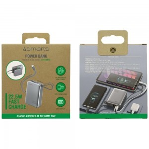 Powerbank 4smarts Pocket Dual Cord 20000mAh 22.5W beépített USB-C kábel 15cm szürke