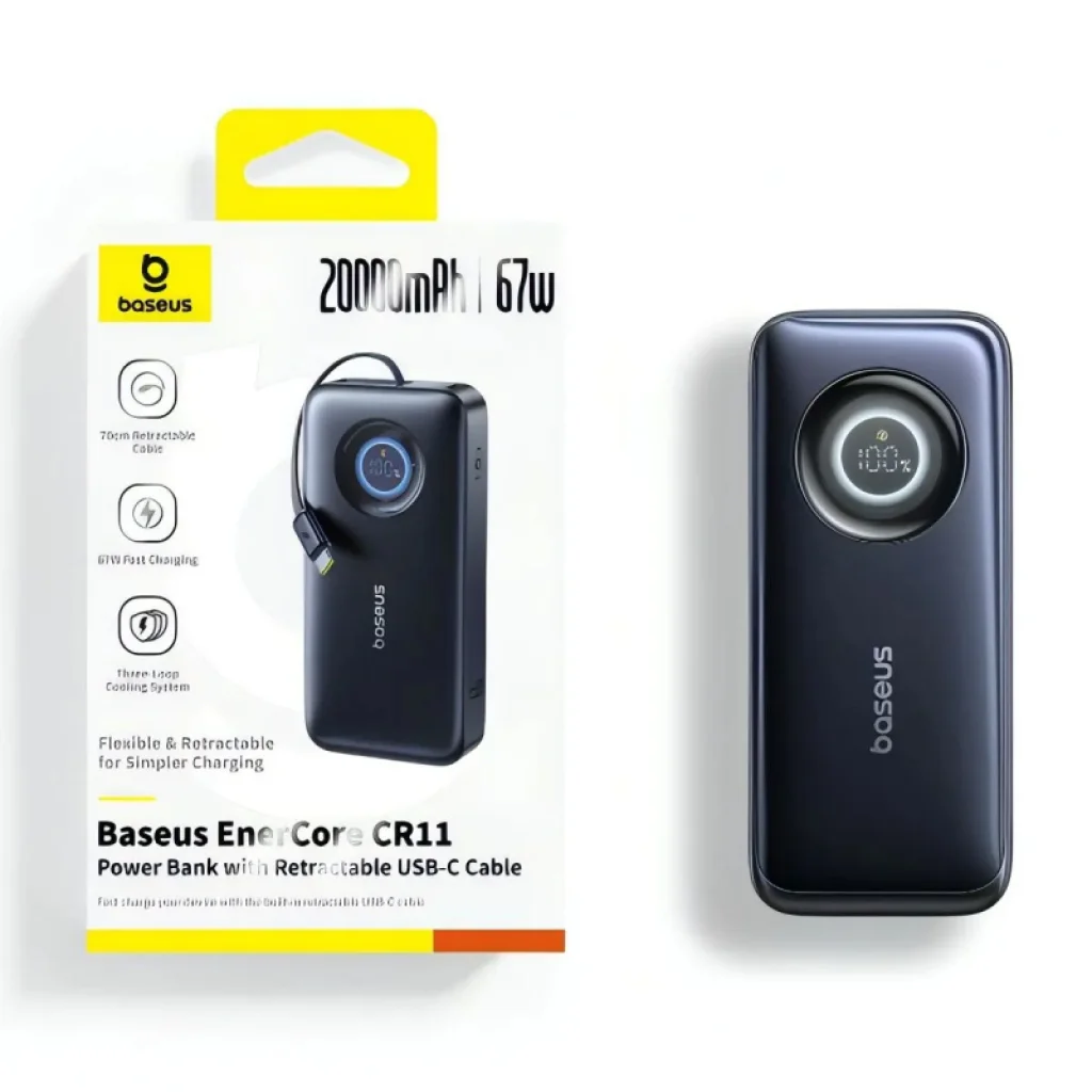 A Baseus EnerCore CR11 powerbank tökéletes választás azoknak a felhasználóknak, akik bárhol szükségük van nagy teljesítményre és gyorstöltésre. A beépített 70 cm-es visszahúzható USB-C kábel révén teljesen megszűnik a kábelek összegabalyodásának vagy elfelejtésének gondja. A szegmentált zárrendszer lehetővé teszi a kábelhossz beállítását a tisztább és kényelmesebb használathoz, így ideális utazáshoz, túrázáshoz, kempingezéshez vagy mindennapi használatra.