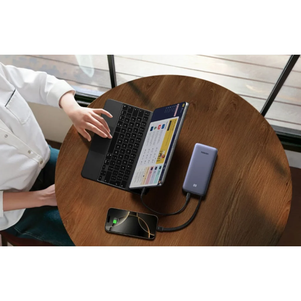 Az UGREEN PB536 egy prémium kategóriás powerbank, amelyet a modern életstílushoz terveztek. Legyen szó zsúfolt munkanapokról az irodában, hosszú utazásról, vagy egy pihentető piknikről a szabadban, ez a szürke eleganciával és páratlan teljesítménnyel felvértezett eszköz garantálja, hogy eszközei sosem merülnek le. A hatalmas 20000 mAh kapacitás és az akár 45W-os gyorstöltés, a beépített fonott kábel és a praktikus hordozópánt együttesen biztosítják a megbízható és kényelmes energiaellátást bárhol, bármikor.
