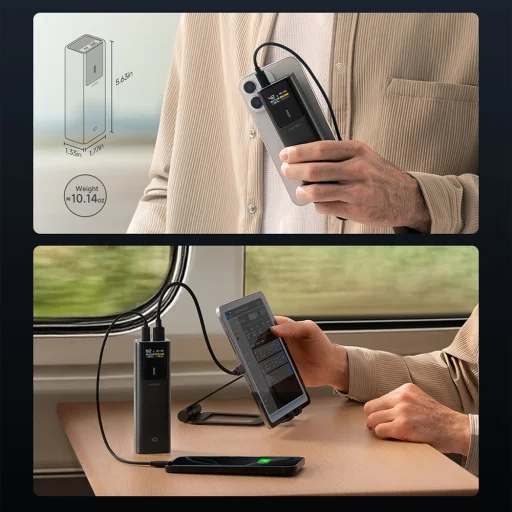 Despite its enormous capabilities, the power bank remains light and handy, weighing only about 0.63 lbs and fitting in a pocket or bag.