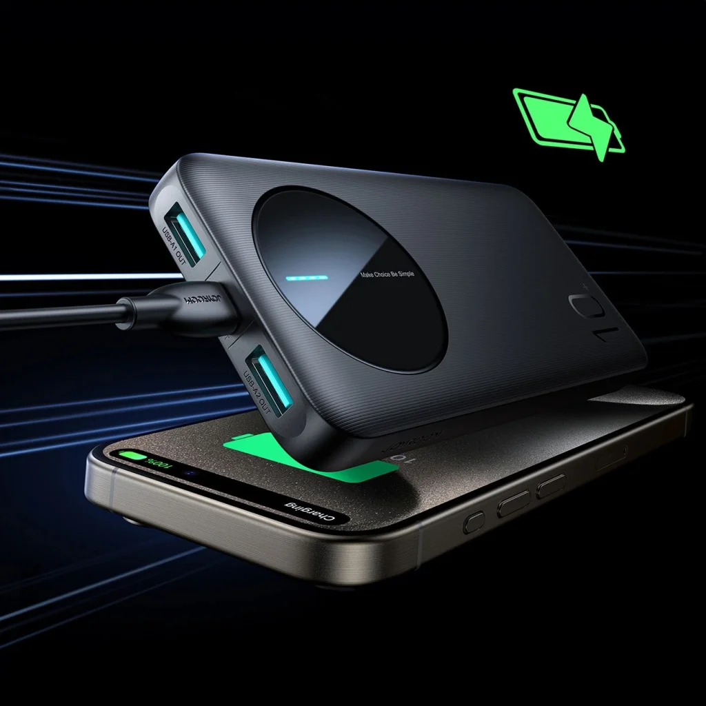 - Hosszú üzemidőt biztosít töltés nélkül . A 10,000 mAh kapacitás lehetővé teszi különböző eszközök töltését: okostelefonok, tabletek és vezeték nélküli fülhallgatók.