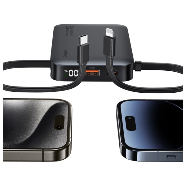 Powerbank USAMS XR Series CD228 10000mAh 20W + USB-C/Lightning cable is a modern and functional solution for people who value fast charging in a compact form. The device is equipped with a clear LED display showing the charge level. With a capacity of 10000mAh, it is perfect for everyday use. It weighs about 183 g and measures 69×109.6×19 mm, making it convenient to carry. It is a practical power source for anyone who wants reliable charging always at hand.