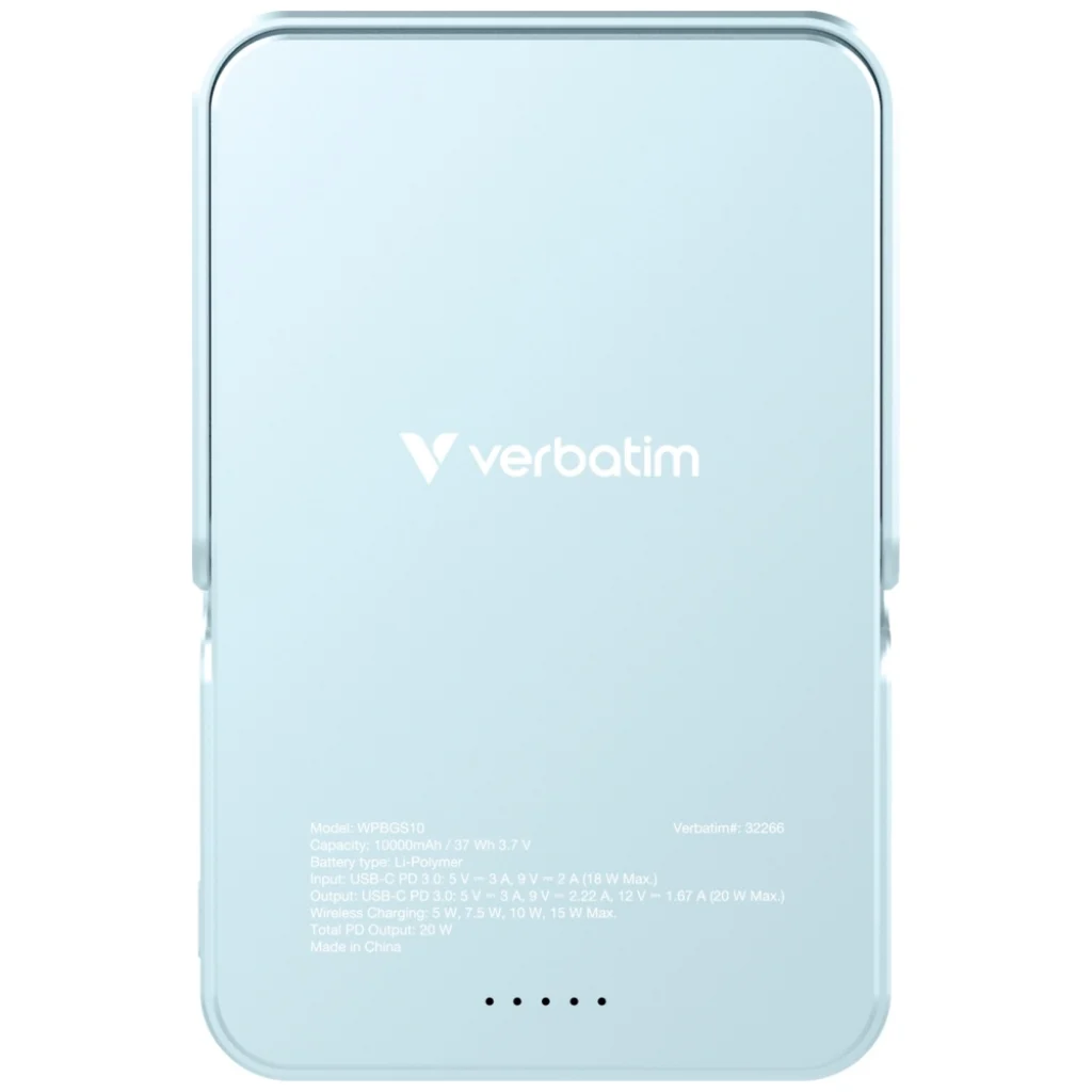 • Stílusos kék design: A letisztult és modern kék felület, kombinálva a prémium Verbatim minőségi kivitelezéssel, nemcsak hasznos eszközzé, hanem stílusos kiegészítővé is teszi ezt a powerbankot.