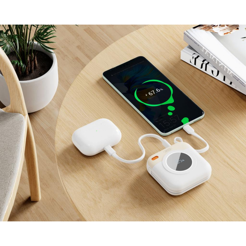 Az XO PR258 integrált Lightning és Type-C kimeneteket tartalmaz, amelyek akár 20W-os gyors töltést is támogatnak, így ideális mind Apple, mind Android készülékek számára. Ezenkívül az USB-C port támogatja a kétirányú töltést (bemenet/kimenet akár 18W), biztosítva a gyors és stabil energiaátvitelt minden eszközéhez.
