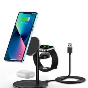 - Funkcionalitás: Három eszköz egyidejű töltése (óra, fejhallgató, okostelefon) teljesítményveszteség nélkül. Kompakt érintkezési pontok, amelyek nem ütköznek egymással.