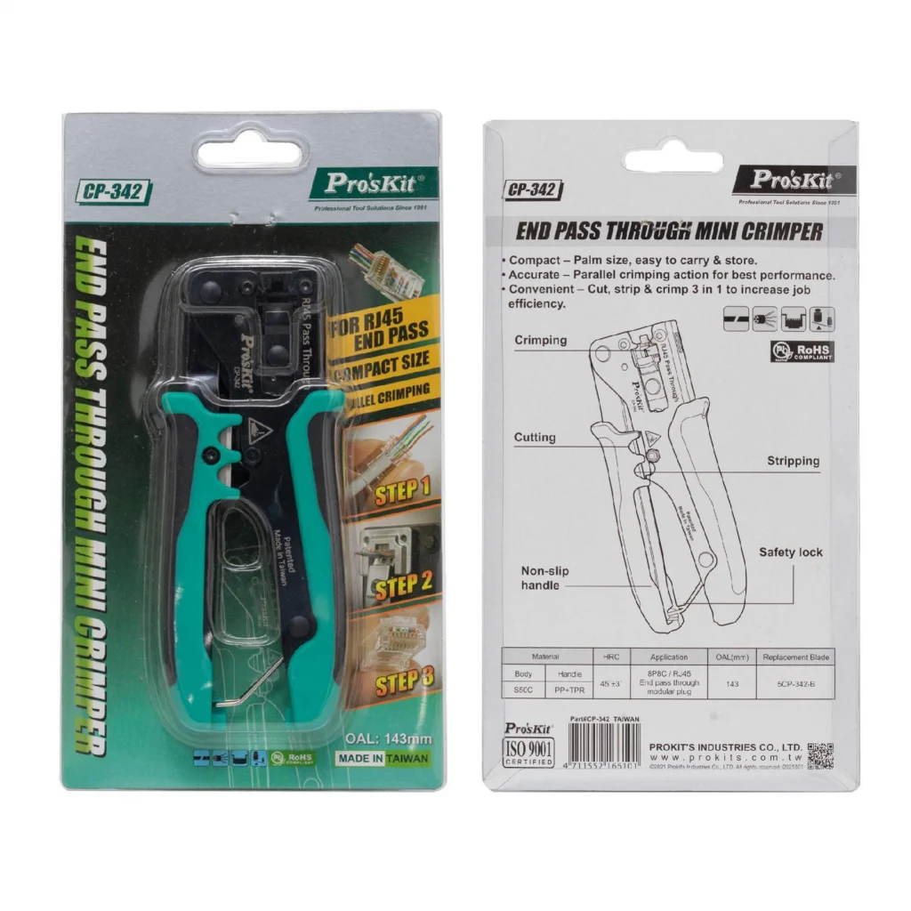 A Pro'sKit CP-342 UTP-RJ45-8P8C gyorskrimpelő fogó ideális választás azok számára, akik gyors és pontos csatlakozókészítést szeretnének elérni. Ez a professzionális kéziszerszám kifejezetten átmenő, nyitott végű dugókhoz készült, de a hagyományos RJ45 moduláris dugókkal is kompatibilis, így sokoldalúan használható hálózati kábelezési feladatok során.
