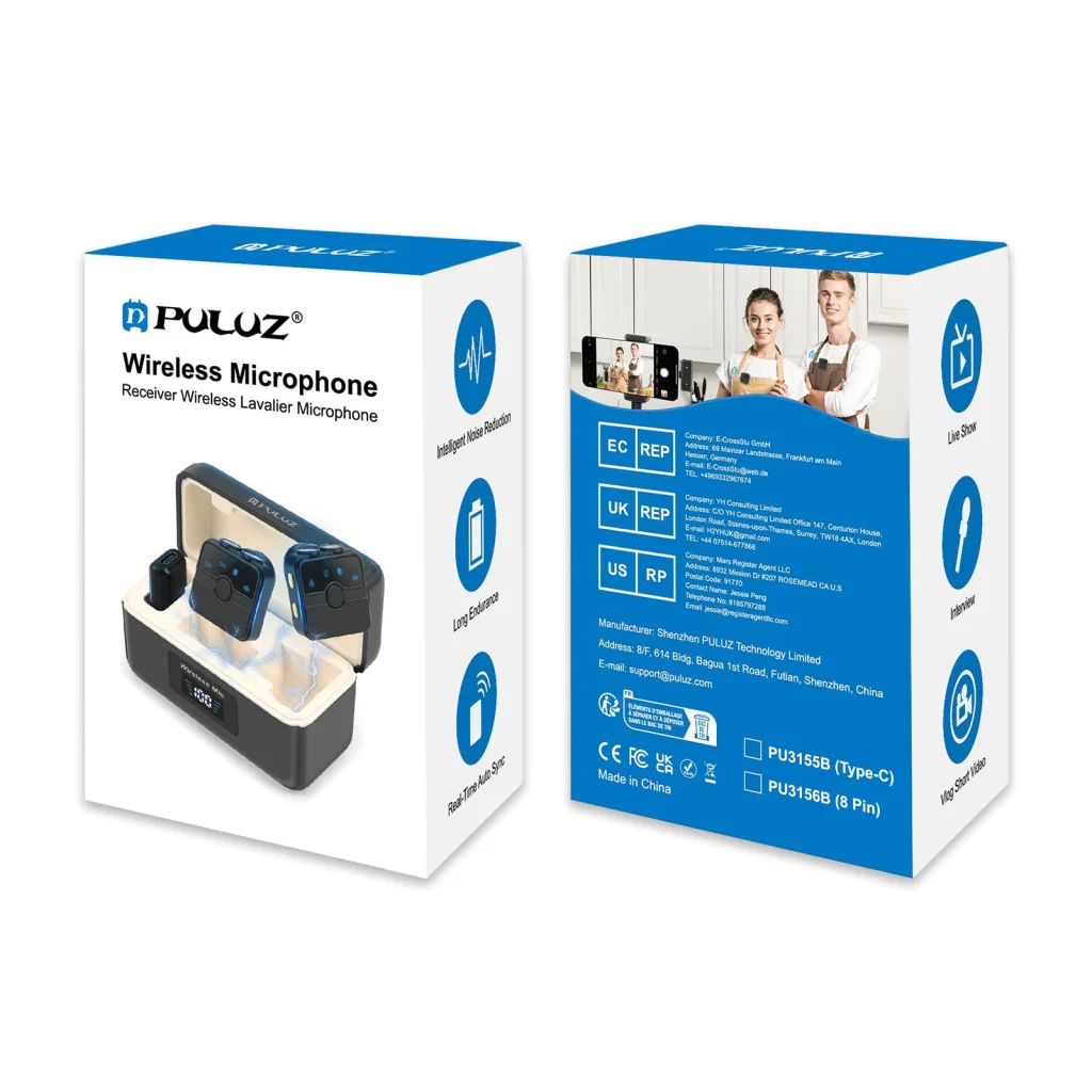 Légy te a hang mestere a PULUZ SmartLink WS300 vezeték nélküli csíptetős mikrofon szettel! Ez a prémium minőségű audio megoldás tökéletes választás vloggerek, tartalomgyártók, interjúztatók és mindenki számára, aki kristálytiszta hangfelvételeket szeretne készíteni, zajos környezetben is. A kompakt, mégis erőteljes rendszer két adóval (TX) és egy Type-C vevőegységgel (RX) érkezik, kényelmes töltőtokban, így mindig készen áll a bevetésre.