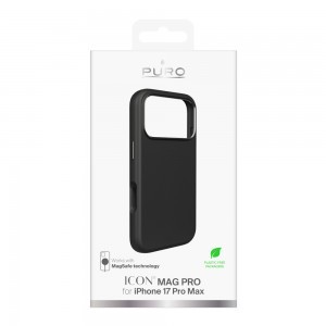 A Puro Icon Mag Pro tok kivételes védelmet nyújt az iPhone 17 Pro Max számára, eleganciát ötvözve a funkcionalitással. Magas minőségű szilikonból készült, puha, matt soft-touch felülettel és finom mikroszálas béléssel, hatékonyan védi okostelefonját a karcolásoktól és kisebb sérülésektől. A tok az egész készüléket, beleértve a kamerát is, lefedi, a fémes kidolgozású, emelt élek pedig fokozzák a biztonságot. Az alumínium gombok könnyű használatot biztosítanak, míg a beépített mágnesek teljes MagSafe kompatibilitást biztosítanak. Ez a klasszikus, elegáns fekete tok tökéletesen ötvözi a védelmet, a stílust és a praktikusságot. ~ Specifikáció: