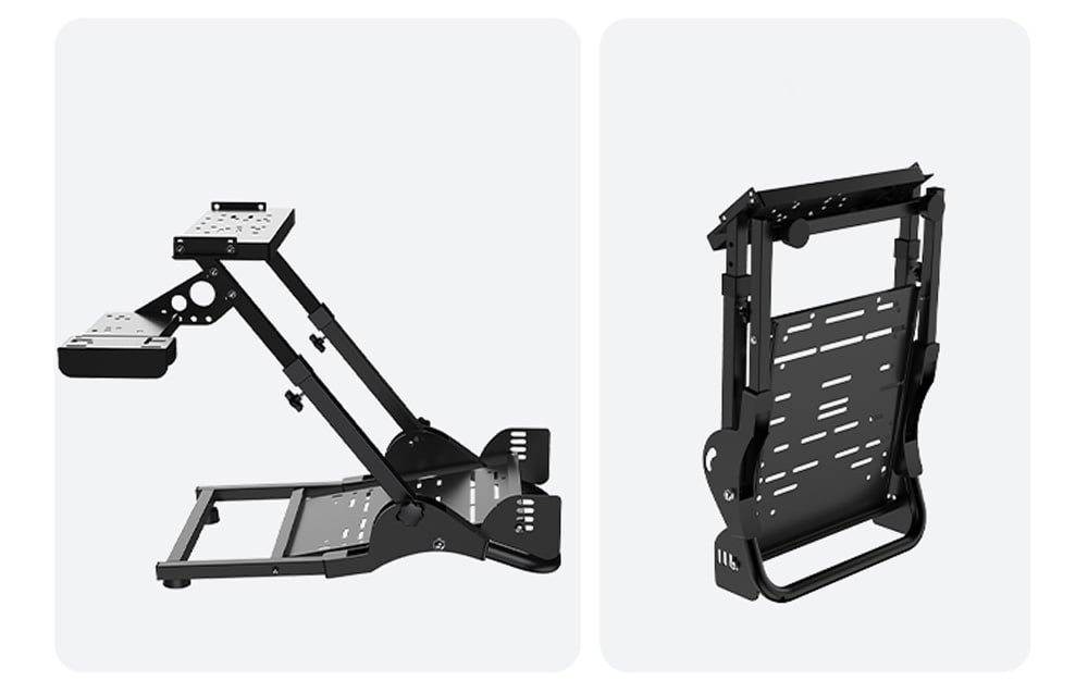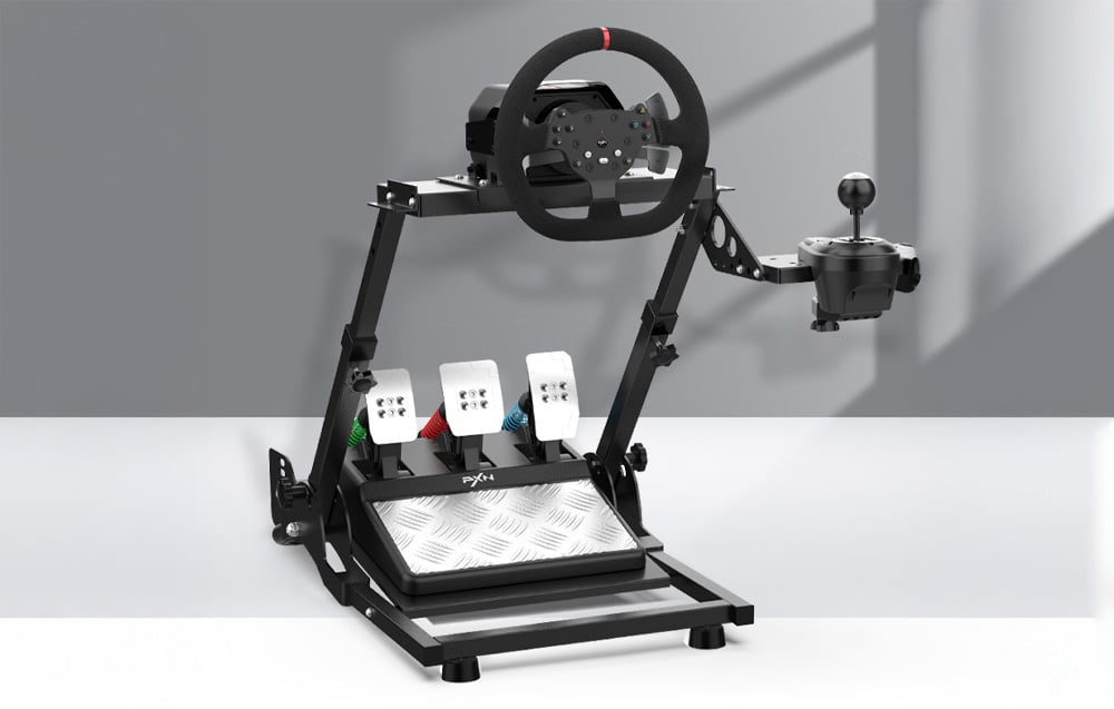 A PXN-A10 egy masszív, összecsukható kormánykerék- és pedálállvány, amelyet olyan játékosok számára terveztek, akik a kényelmet, a stabilitást és a helytakarékosságot szeretnék ötvözni. Tartós Q235-ös szénacélból készült, így stabil alapot biztosít a vezetésszimulációhoz, függetlenül a játék intenzitásától. Sokoldalú megoldás azok számára, akik különböző kormánykerék-, pedál- és váltóbot-modelleket használnak.
