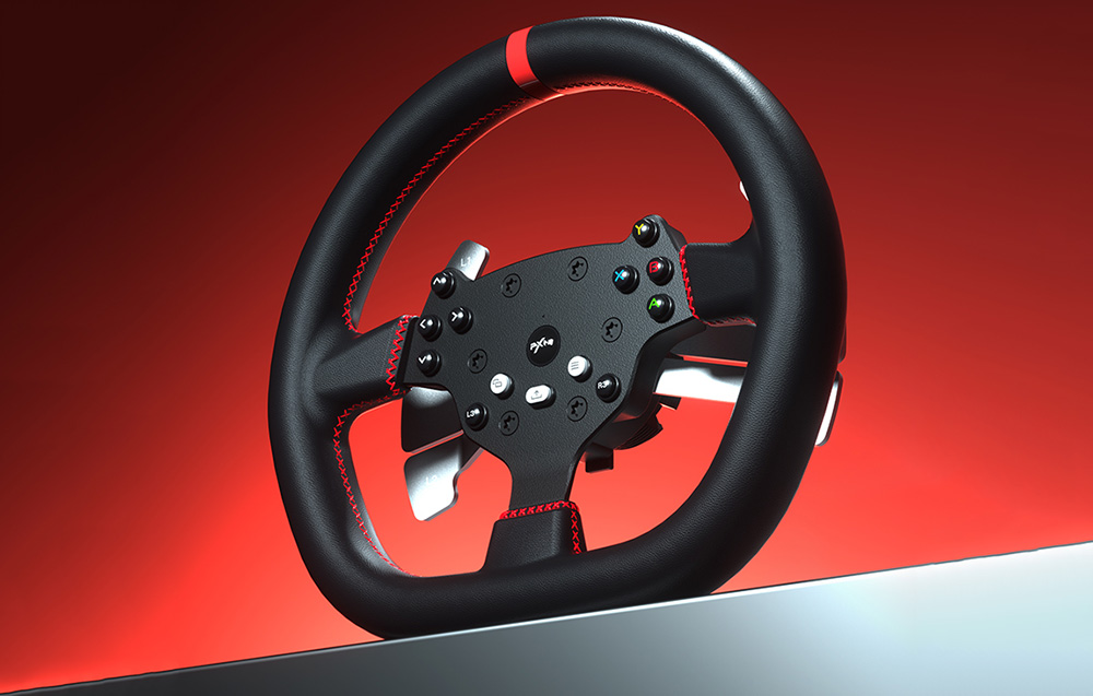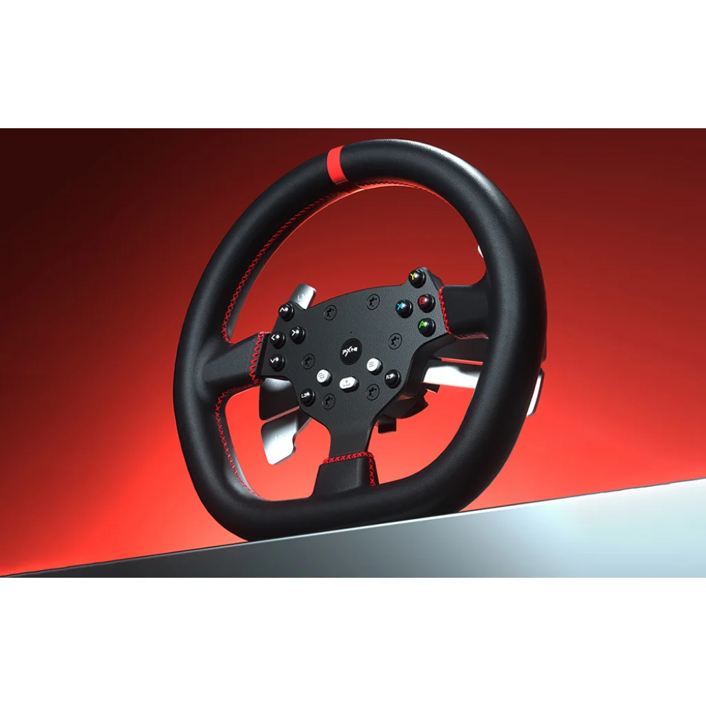 A levehető 270 mm-es D-alakú kormánykerék kiváló minőségű bőrrel van kárpitozva a kényelem és a stabil fogás érdekében. 17 programozható gombbal és F1 formula stílusú lapátokkal rendelkezik, így minden manőver felett teljes irányítást biztosít. Az Aerospace minőségű csúszógyűrűnek köszönhetően tartós és megbízható jelátvitel valósult meg még intenzív használat során is.