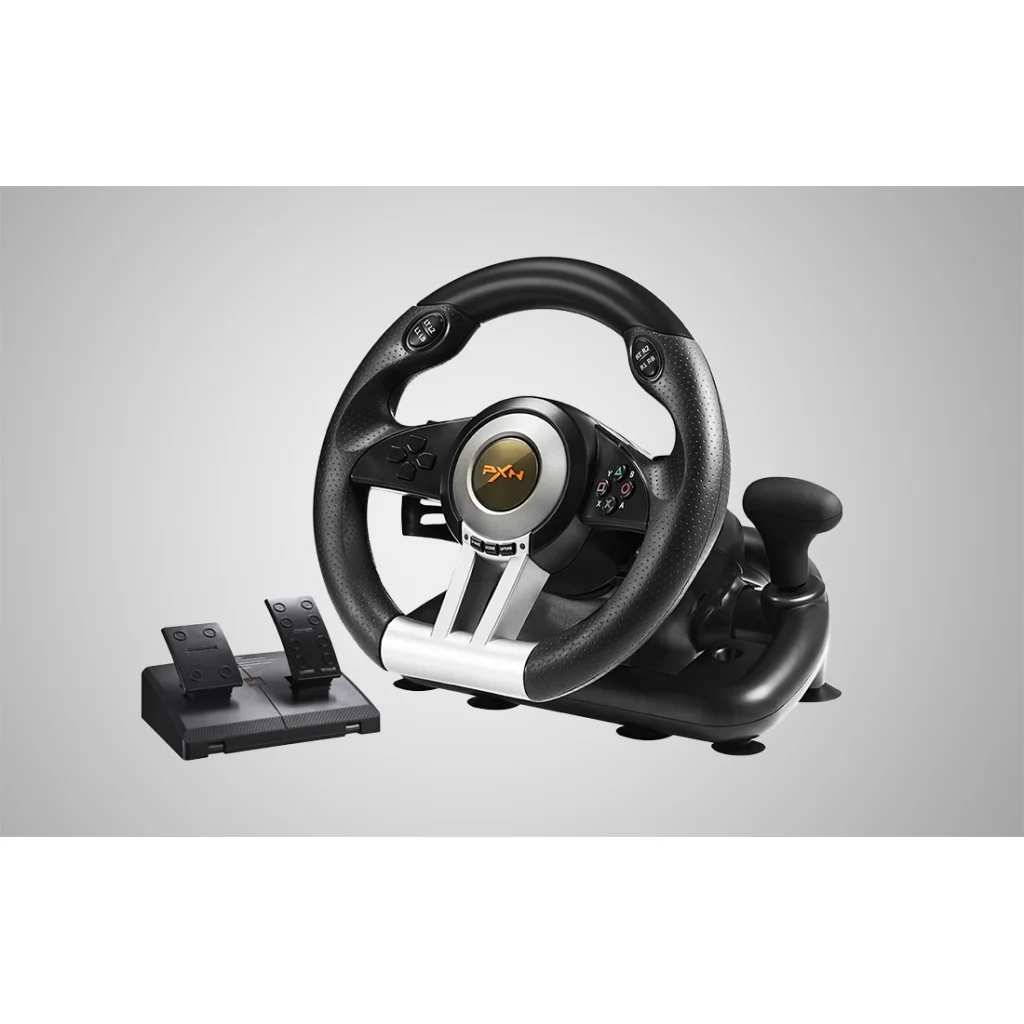 A PXN-V3 kormány ideális választás minden játékos számára, aki hosszú órákat tölt versenyzős játékokkal. 180 fokos forgási tartománnyal és beépített sebességváltóval rendelkezik. A széles körű kompatibilitás biztosítja az eszköz sokoldalúságát, a stabil rögzítés pedig a kényelmes használatot. A kormány 8 programozható gombot kínál. A készlet tartalmaz pedálokat is.