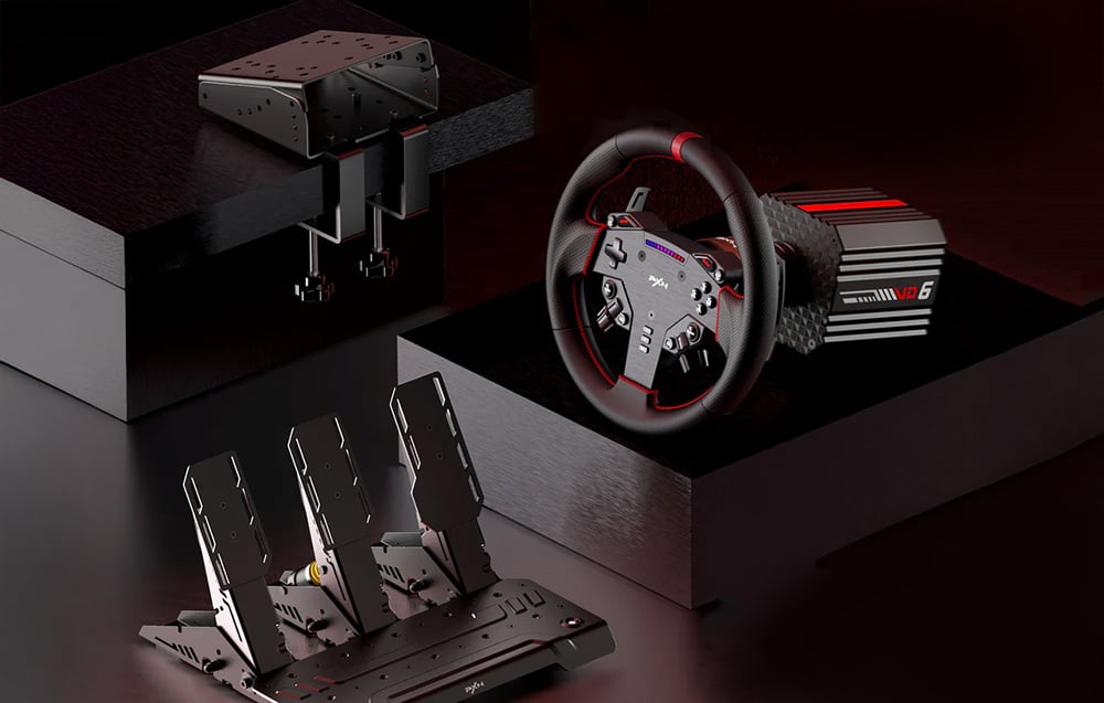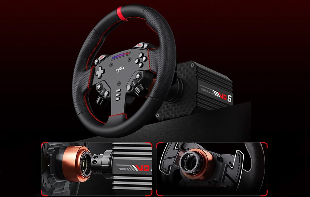 A készlet fő alkotóeleme a PXN VD6 alap, amely Direct Drive-ot használ, biztosítva az azonnali reakciókat és a kormánykerékre átvitt erő részletességét, amely valósághű élményt nyújt. Az állandó 6 Nm-es nyomaték garantálja, hogy minden irányváltás vagy járdaszegélyre való rácsapás jól érezhető. A precíz működésről egy beépített 24 bites mágneses kódoló gondoskodik. A WDS R2 kormánykerék mikroszálas borítással rendelkezik a jobb tapadás és kényelem érdekében, és 11 programozható gombbal, 2 tárcsával és 11 LED-del van felszerelve. Az alumínium váltótárcsák masszívak, és a gyorskioldó rendszer megkönnyíti a kormánykerék cseréjét.