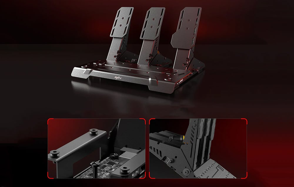 A Hall technológia alapján működő, 3 pedált tartalmazó készlet pontosabb és tartósabb működést biztosít, mivel az elemek kopásmentesek. A pedálpanel szöge akár 60 fokig is beállítható. A PXN Sense+ algoritmus elemzi a játék adatokat, és még pontosabbá teszi a vezetési élményt. A PXN SimRacing alkalmazás segítségével könnyedén konfigurálható a készlet, beleértve a pedálok kalibrálását és a kormánykerék gombjainak beállítását.
