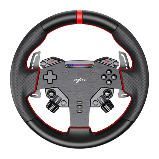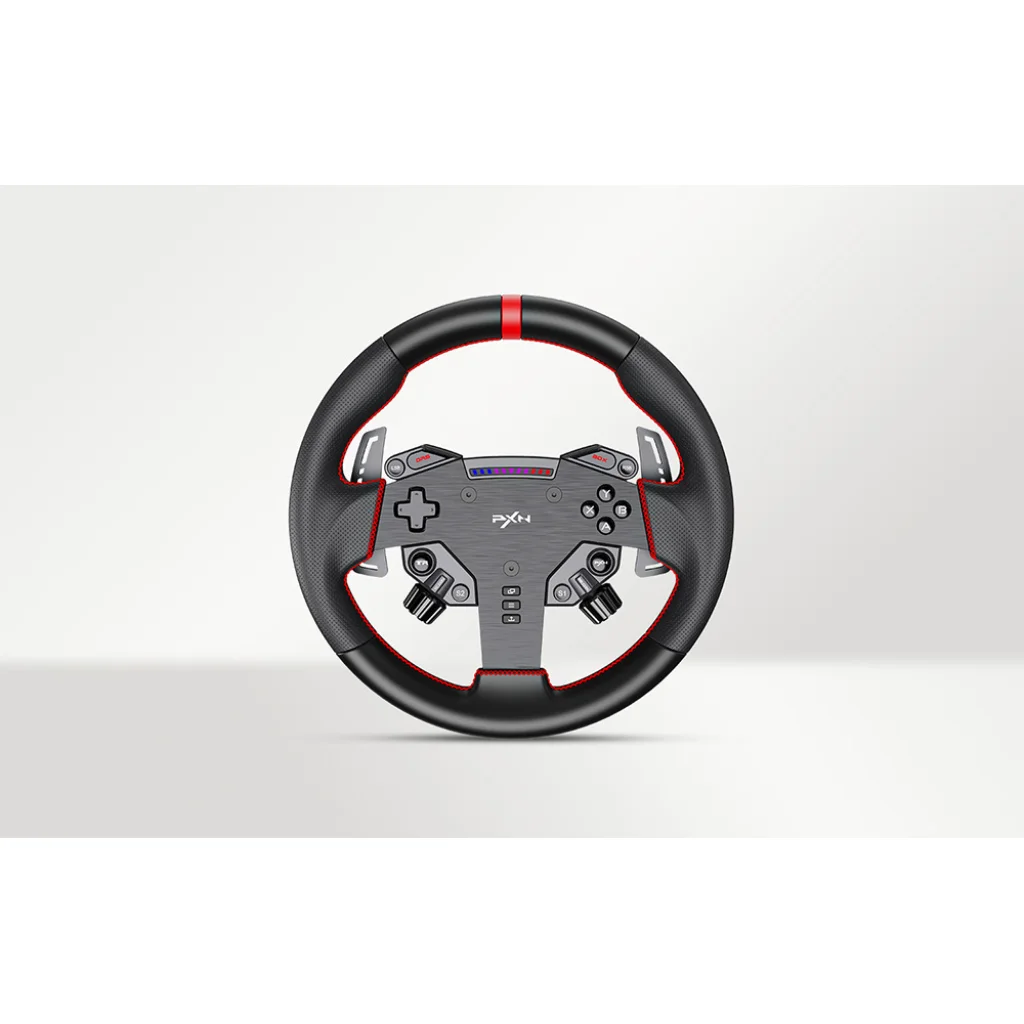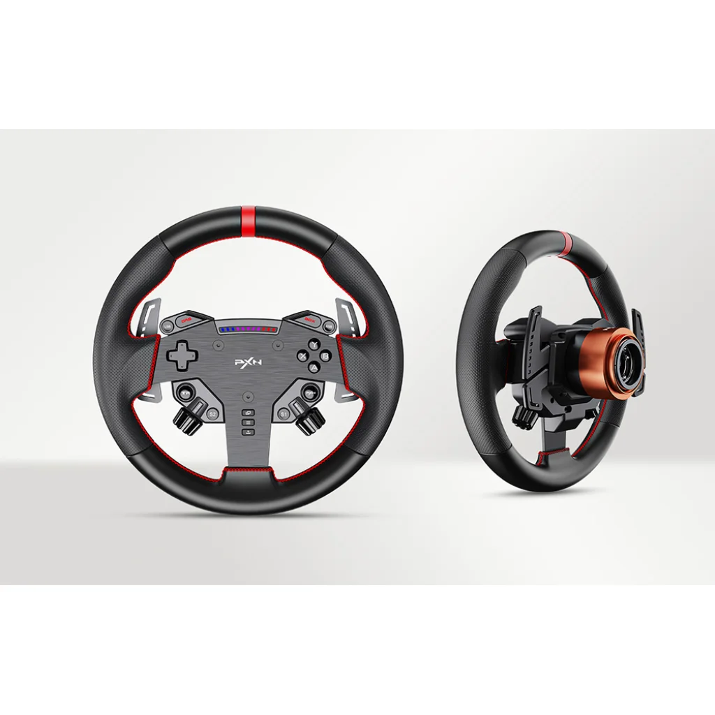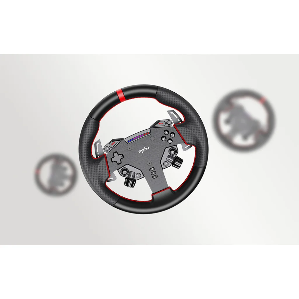 A PXN W AS játékos kormánykerék 280 mm átmérőjű, és precíz irányítást, valamint maximális valósághűséget biztosít vezetés közben. Ergonómikus kialakítása stabil fogást nyújt, a programozható gombok pedig lehetővé teszik a vezérlés személyre szabását. A VD4 és VD6 alapokkal való kompatibilitás, valamint a PC támogatás megkönnyíti az integrálását a rendszeredbe. Ideális választás azok számára, akik teljes kontrollt és gyors reakciót várnak el minden pályahelyzetben.