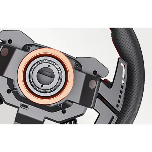 A kormánykerék alumíniumötvözetből készült gyorskioldó rendszerrel rendelkezik, amely szerszám nélkül is lehetővé teszi a kerékperem gyors cseréjét. Ez különösen praktikus többféle hardverkonfiguráció használata esetén. A robusztus kialakítás és a csúszógyűrűs kommunikáció stabil, zavartalan működést biztosít még intenzív játék során is.