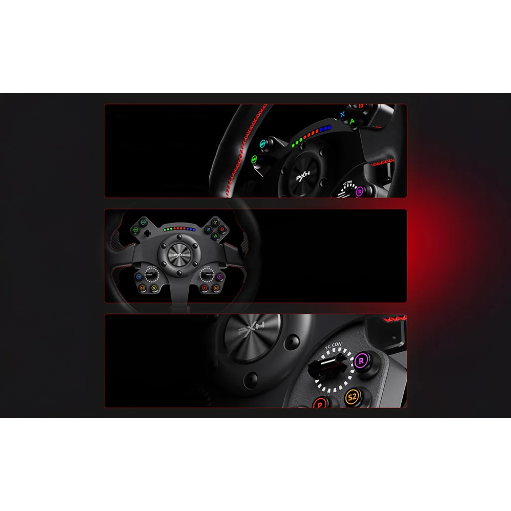 A PXN WCS R2 13 gombbal és egy 20 állású forgókódolóval van felszerelve, amely lehetővé teszi az olyan paraméterek pontos beállítását, mint a fékegyensúly, a kipörgésgátló és az ABS. A kormánykerék emellett támogatja az RGB háttérvilágítást - akár 12 zóna is testre szabható a stílusodnak vagy játékigényeidnek megfelelően, így nem csak praktikus, de lenyűgöző szettet is alkothatsz.