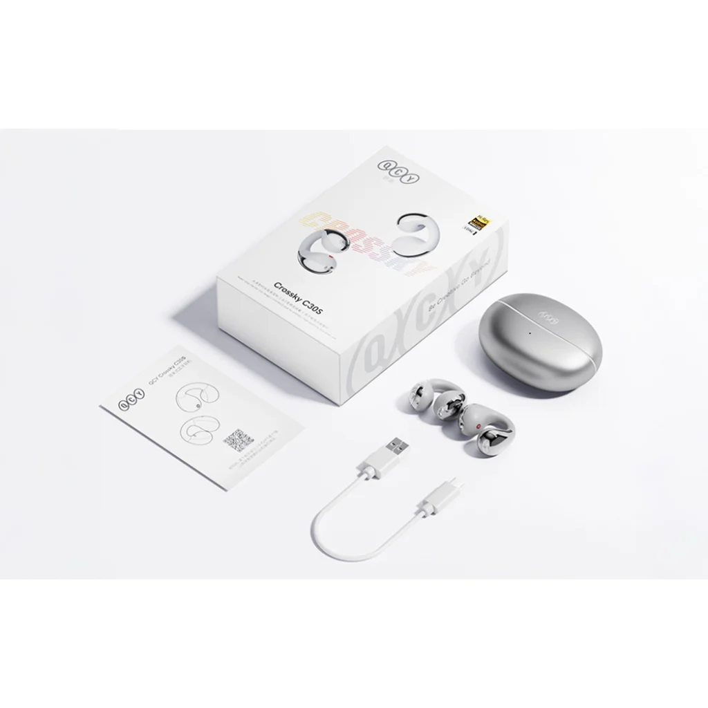 A QCY Crossky Clip C30S nyitott fülhallgató azok számára készült, akik egyszerre szeretnék hallani a zenét és a körülöttük lévő világot. A nyitott füles kialakítás Anti-Z klippel kiküszöböli a nyomást és a kényelmetlenséget, így még órákig tartó viselés esetén is kényelmes viseletet biztosít. A 10,8 mm-es meghajtónak és a Bass Enhancement algoritmusnak köszönhetően a hangzás kivételes mélységet és tisztaságot nyer, az LDAC kodek támogatás és a Hi-Res Audio Wireless tanúsítvány pedig részletes, tágas hangzást garantál. A stabil Bluetooth 6.0 kapcsolatnak és az akár 40 órás üzemidőnek köszönhetően megszakítás nélkül élvezheti kedvenc zenéit - otthon, edzés közben és útközben is.