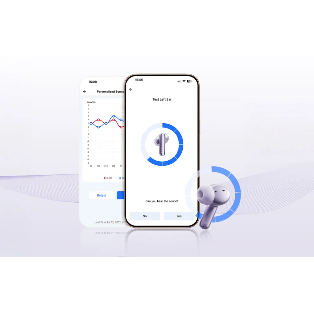 Önre szabott hangzás A QCY alkalmazásban található HearX™ funkció lehetővé teszi, hogy személyre szabott hangprofilt hozzon létre. Egy rövid teszt elemzi a füle érzékenységét a különböző frekvenciákra, és automatikusan beállítja az EQ-görbét, hogy minden dal pontosan úgy szóljon, ahogyan Ön szeretné. Az alkalmazáson belül kiválaszthatja a zajszűrési módokat, testre szabhatja az érintésvezérlést, használhatja a többpontos csatlakozást vagy frissítheti a szoftvert. A teljes körű vezérléshez speciális üzemmódok is rendelkezésre állnak - játékmód alacsony késleltetéssel és alvó üzemmód, amely ideális a pihenéshez.