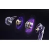 A DualCore Acoustic rendszer két különböző meghajtót használ az eltérő frekvenciatartományokhoz, így jobb hangminőséget biztosít. A gyűrűs dinamikus meghajtó erőteljes mélyhangokat és természetes vokált ad, míg a piezoelektromos egység tiszta, részletgazdag magas hangokat biztosít. A speciális akusztikai kialakítás csökkenti a torzítást és javítja a hangszerek elkülönülését.