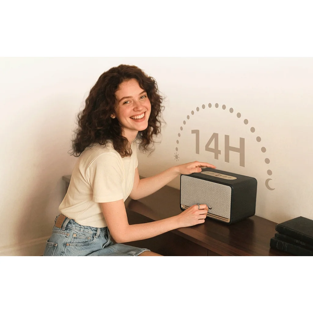 Több hangszórós kialakítás és erőteljes 40 W-os kimeneti teljesítmény A lenyűgöző hangzás titka a hangszóró fejlett akusztikai kialakításában rejlik. Belül négy hangszóró működik együtt: egy 1 hüvelykes selyemkupolás magassugárzó a magas frekvenciákért, egy 3,5 hüvelykes gyapjúszálas mélyhangszóró a mély basszusért, valamint passzív sugárzók az alacsony frekvenciák támogatására. Ez a kialakítás egyértelműen elválasztja a magas és az alacsony frekvenciatartományokat, így a hangzás nagyobb mélységet és természetességet nyer. Minden hangszer és énekhang tisztán hallható marad még nagy hangerőn is. A hangszóró 40 W folyamatos teljesítményt nyújt, csúcsértékben pedig akár 80 W-ot is elérhet, így könnyedén megtölti hanggal a nagyobb helyiségeket is. A hang hangos, dinamikus és kristálytiszta marad, még akkor is, ha feltekeri a hangerőt.