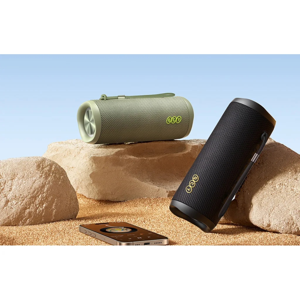 Bármilyen kihívásra kész dizájn A tartós kialakítás, az alumínium nyakpánt tartó és a fonott szíj a QCY SP7 hangszórót rendkívül hordozhatóvá és minden alkalomra késznek teszi. Vigye magával bárhová, és hagyja, hogy a tökéletes hangzás mindig elkísérje Önt. Modernista dizájnja tökéletesen illeszkedik bármilyen térbe, esztétikus kiegészítője lesz egy rendezvénynek - akár otthon, akár a szabadban. Válassza a QCY SP7-et, és fedezze fel, milyen az igazi zenei erő!
