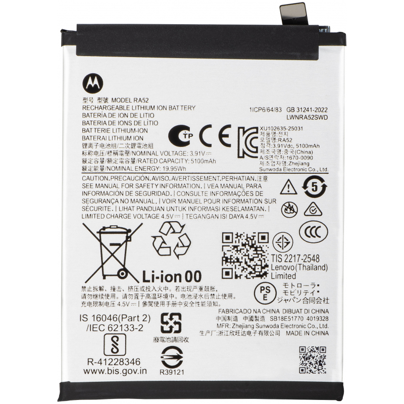 RA52 akkumulátor Motorola Moto G86-hoz. Motorola licencelés alatti pótalkatrész, amelyet a sérült akkumulátor cseréjére használhat a telefonjában. Cserélje le a régi akkumulátort, és szerelje fel telefonját egy új, eredeti akkumulátorral, amely biztosítja számára a szükséges energiát.
