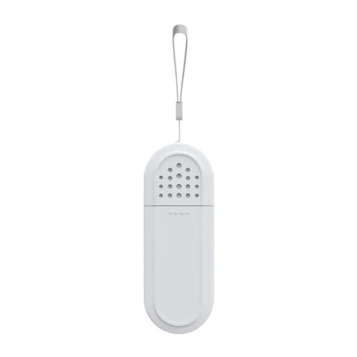 A kisméretű, könnyű ház praktikus hevederrel van ellátva, így az érzékelő gyorsan felakasztható a kívánt helyre, vagy egyszerűen sík felületre helyezhető. A telepítés csak egy pillanatot vesz igénybe, és a készülék azonnal használatra kész.
