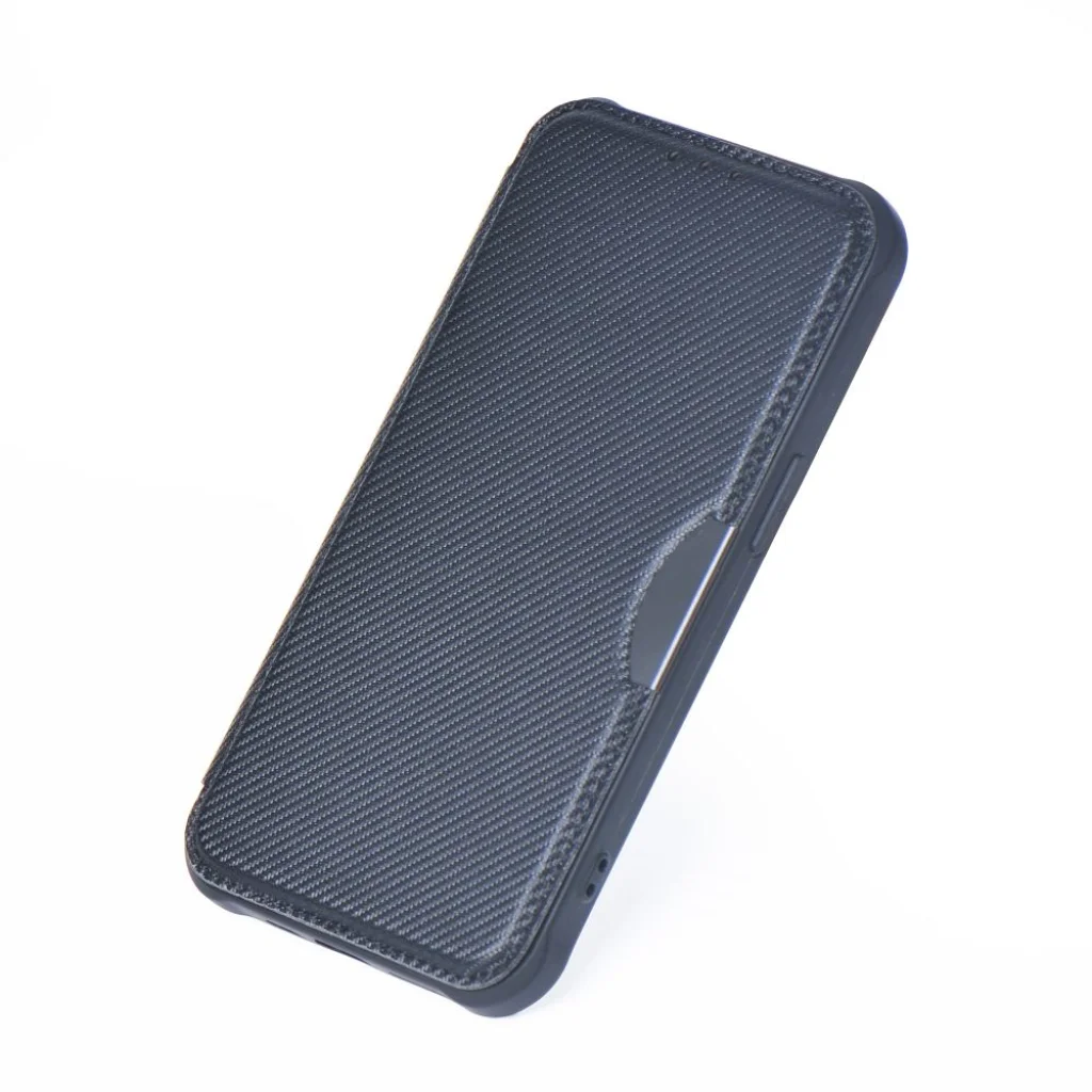 A sötét színű, karbon hatású tok a sportautók dizájnját idézi és elegáns jelleget ad a készüléknek. A belső anyag olyan puha, hogy további védelmet nyújt a kijelzőnek a károsodás ellen, míg a méhsejt mintázat a telefon tartó gumírozott részén kiemeli az egész tok esztétikáját.
