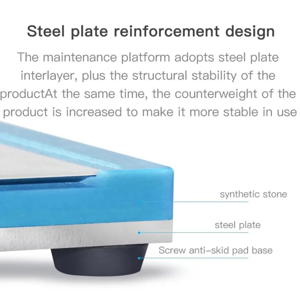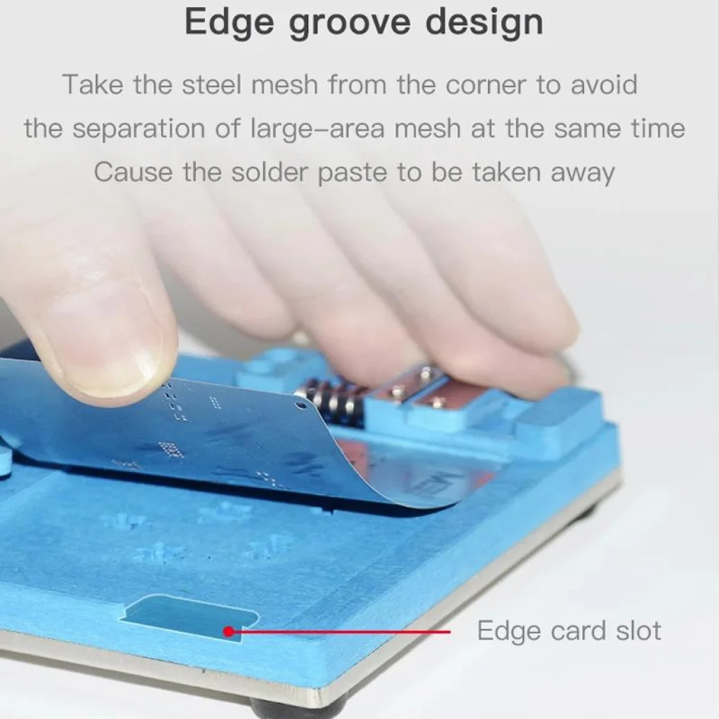 A MaAnt MR-01 egy professzionális munkatartó, amely kifejezetten az Apple iPhone 11-től 16-os sorozatú modellek újragolyózására és finom javítási műveleteire készült. Stabilitást, precizitást és biztonságot kínál forrasztás és alkatrészcserék során.