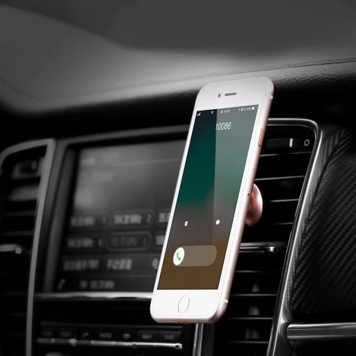 360 fokban fordítható autós telefontartó, szilikon és alumínium anyaghasználattal, rezgéselnyelő kialakításban. A termék tartozéka 1 db fém betét rész, mellyel kompatibilissé tehetjük készülékünket.